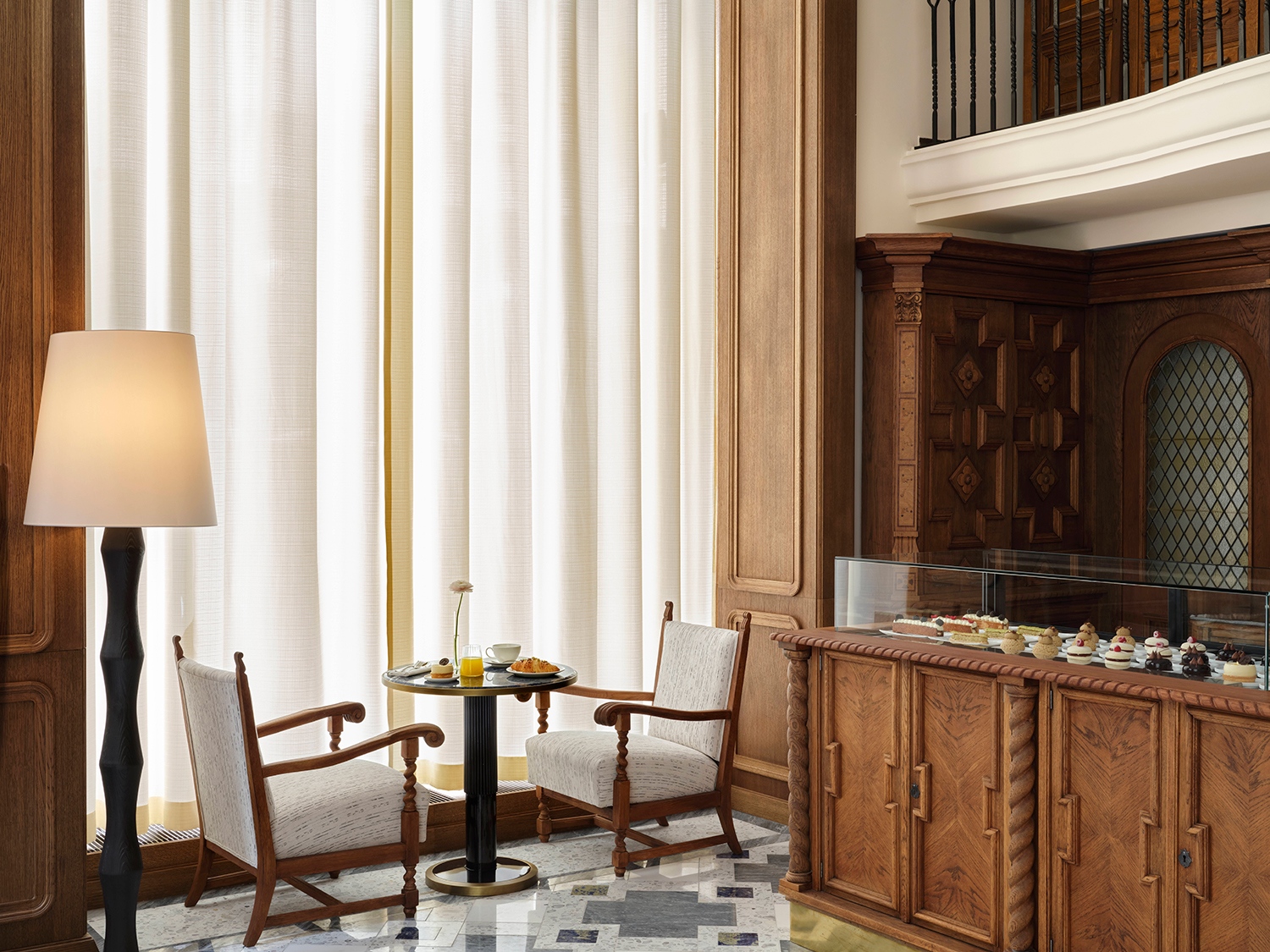 A Klotild Patisserie magyar és osztrák-francia süteményeket, valamint kézműves kávét, többek közt egy limitált kiadású keveréket kínál. A cukrászda egy történelmi patika falai között kapott helyet, így hangulata az időtlen bájban gyökerezik. A hagyományok előtt tisztelegve az Atriumban a vendégek átélhetik a márka olyan védjegyeit, mint a délutáni teázás vagy a látványos sabrázs, a pengével történő, ünnepi pezsgőnyitás.