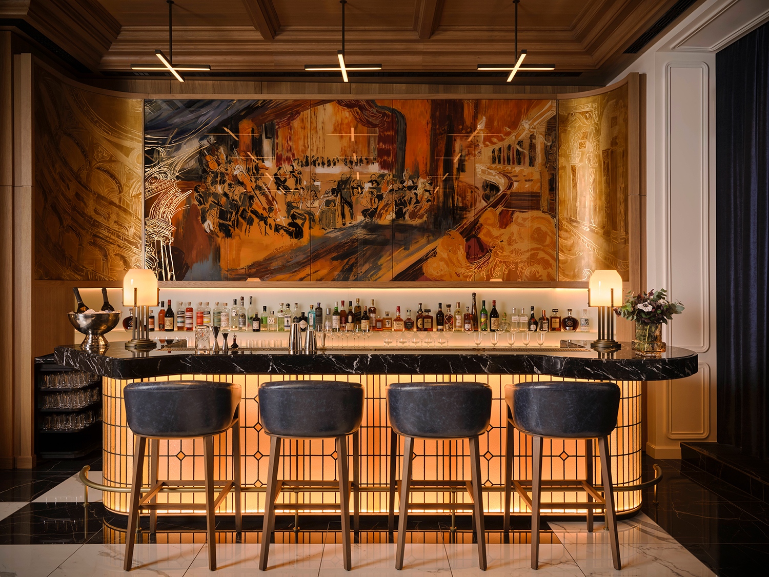 A St. Regis Bár színpadias elrendezéssel, szoborszerű fülkékkel és egy különleges bárpulttal büszkélkedhet. Utóbbit egy hatalmas üvegfalfestmény keretezi, amely a Magyar Állami Operaház zenekarát ábrázolja. A bár az esti társasági élet és az élőzene új központja lesz. Itt kóstolható meg a szálloda saját Bloody Mary-variációja, a The Crown Mary, amely a Klotild-palota gyökerei és az 1934-es New York-i eredeti (akkori nevén Red Snapper) előtt tiszteleg. Az itallapot Tengely Norbert vezető mixológus alkotta meg, akinek filozófiája – „tökéletesség az egyszerűség és a minimalizmus révén” – minden koktélban visszaköszön.