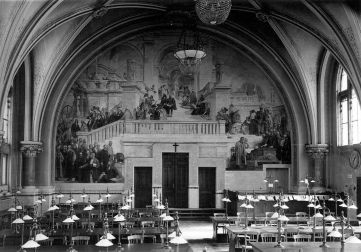 Az első és a második világháborúban a könyvtár épülete – a neogótikus berendezés, az ablaküvegek – és a gyűjtemény egyaránt jelentős károkat szenvedett, bár „csupán” a könyvek 5–6%-a pusztult el, azok a legértékesebb példányok voltak. Az olvasóterem falát díszítő szekkó, Raksányi Dezső festőművész alkotása is megsemmisült.