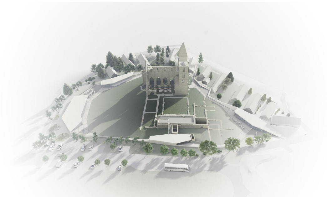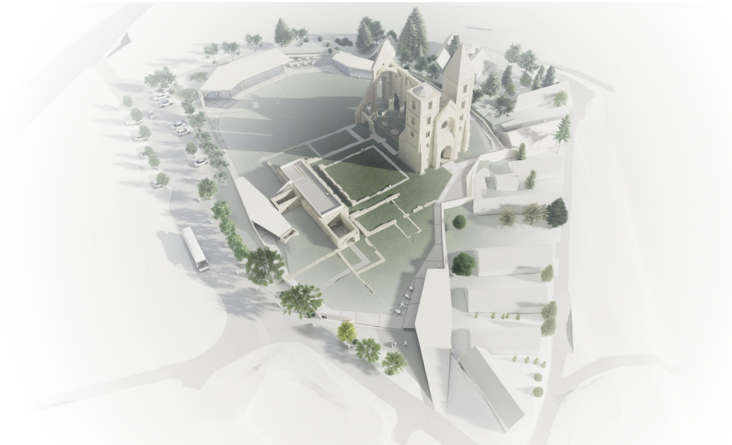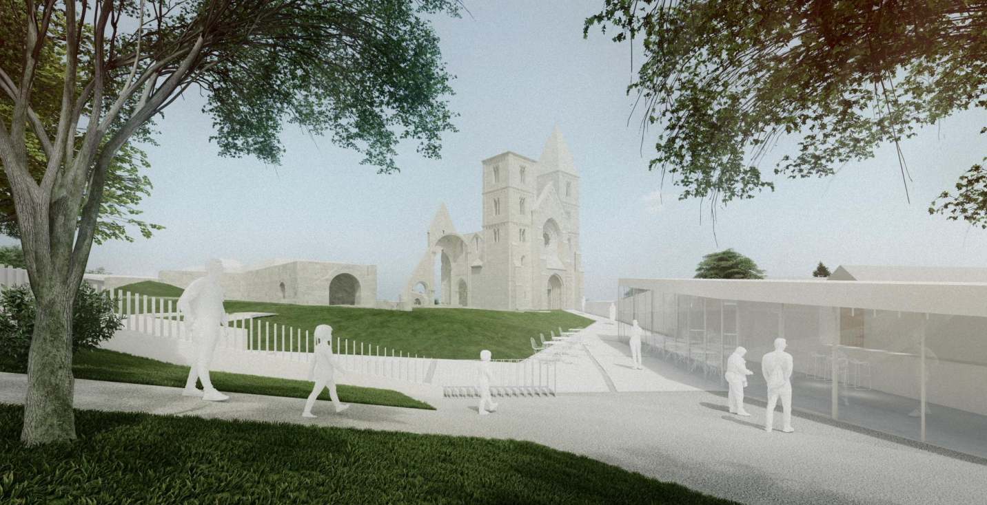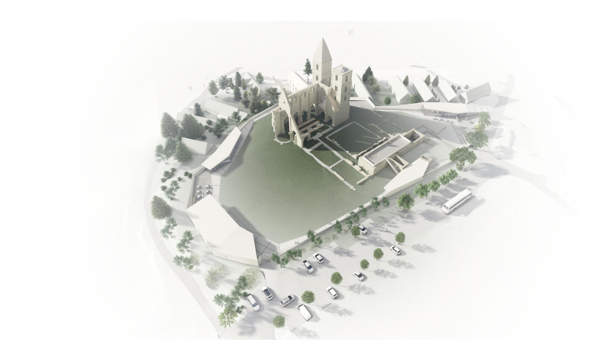 A tervezési terület központi eleme a templom, és a maradványaiból kibukkanó rendház épülete. A tájépítészeti koncepció is ezek jelentőségét hangsúlyozza, a templom esetében megtartva annak gyepben úszó jellegét, míg a rend épületrészeit cserje, illetve évelő foltokkal szegélyezi. A műemlékegyüttes bemutatásának építészeti koncepciója, hogy a látogató egyfajta „csigavonalban” haladva járja körbe a területet, a látnivalókat, kiszolgáló funkciókat is a körben vezető sétány fűzi fel.