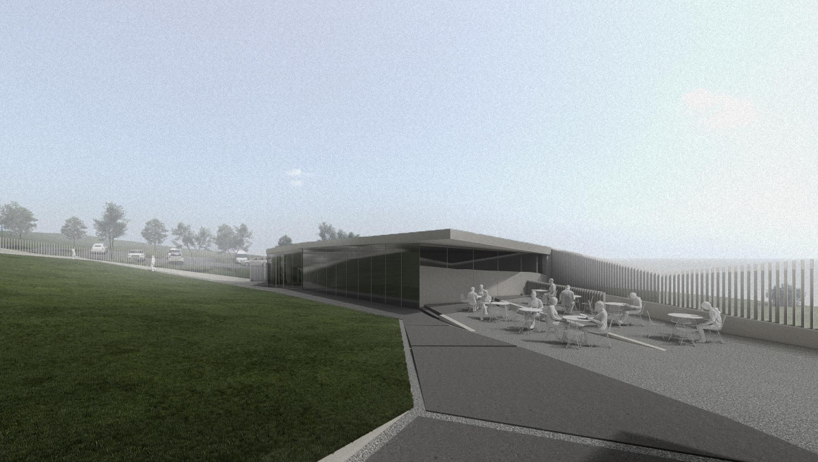 Fogadó épület: A látogató útvonal kezdete és végpontja, benne információs tér, jegypénztár, ajándékbolt, büfé kapna helyet. Üzemeltetése minimális létszámmal is biztosítható. A szükséges kiszolgáló vizes helyiségek, csomagmegőrző, háttér tároló területek a terepszint alatt rendezkednének be.