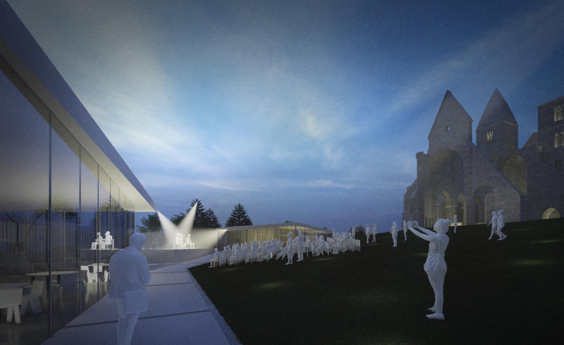 Rendezvényház, multifunkcionális tér: A terület keleti oldalán létesül, közvetlen külső megközelítés lehetőségével. Előadások, kisebb konferenciák, esküvők lehetséges helyszíne, akár időben, üzemeltetésben független működéssel, de vizuális kapcsolatban a templommal. Különleges, egyedi helyszín.
