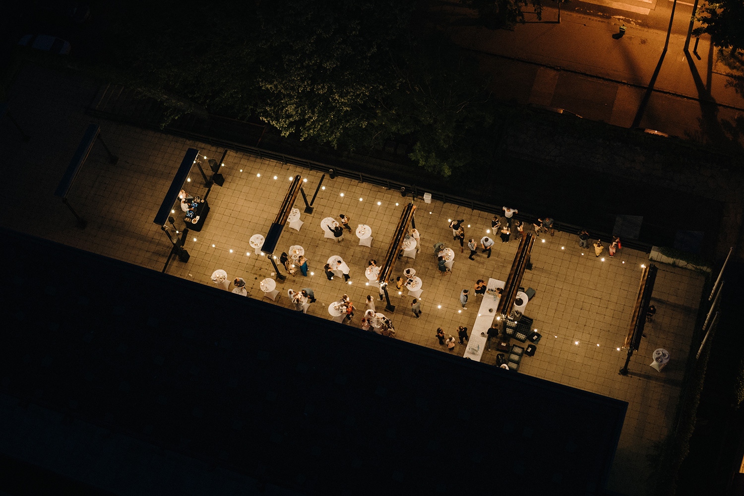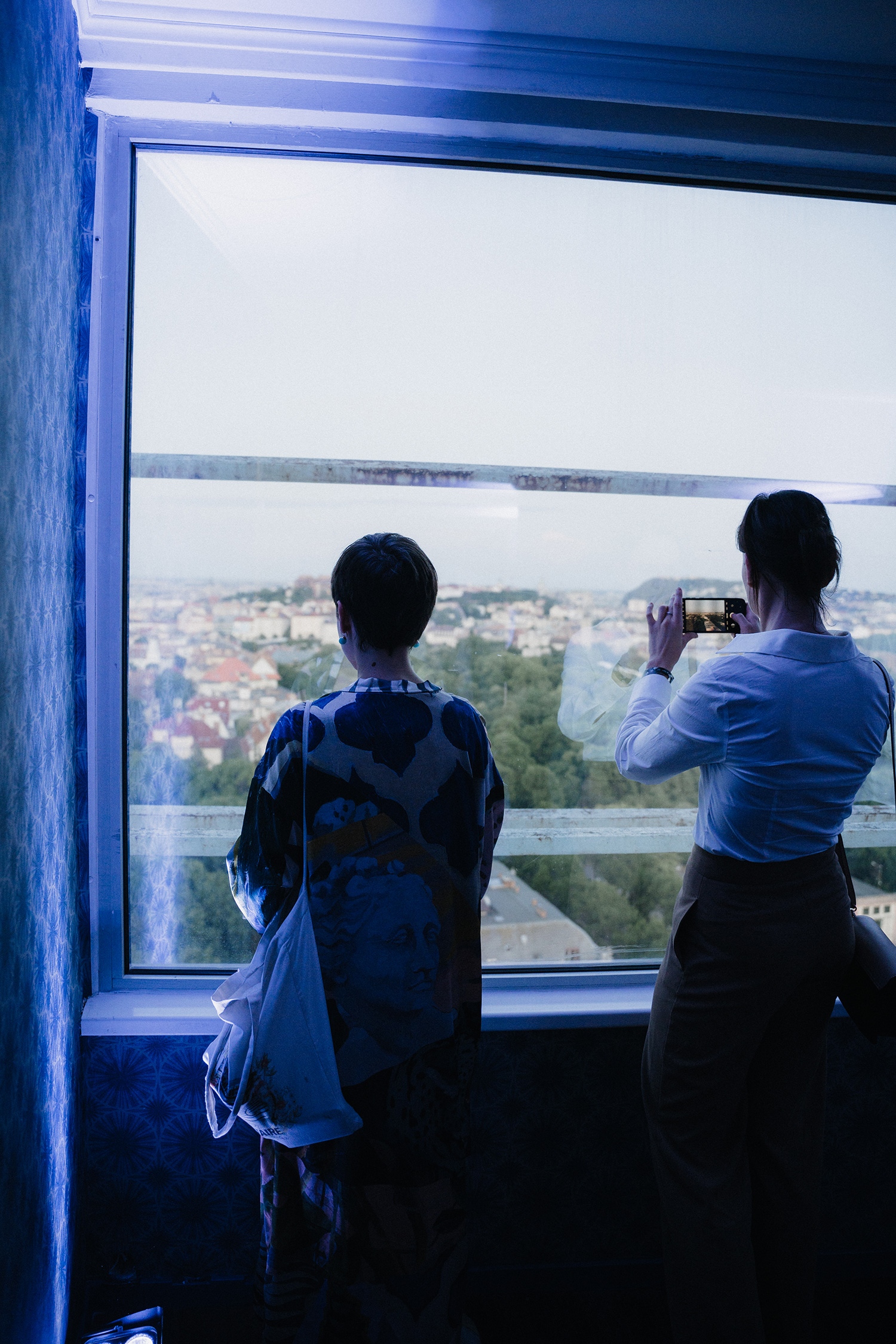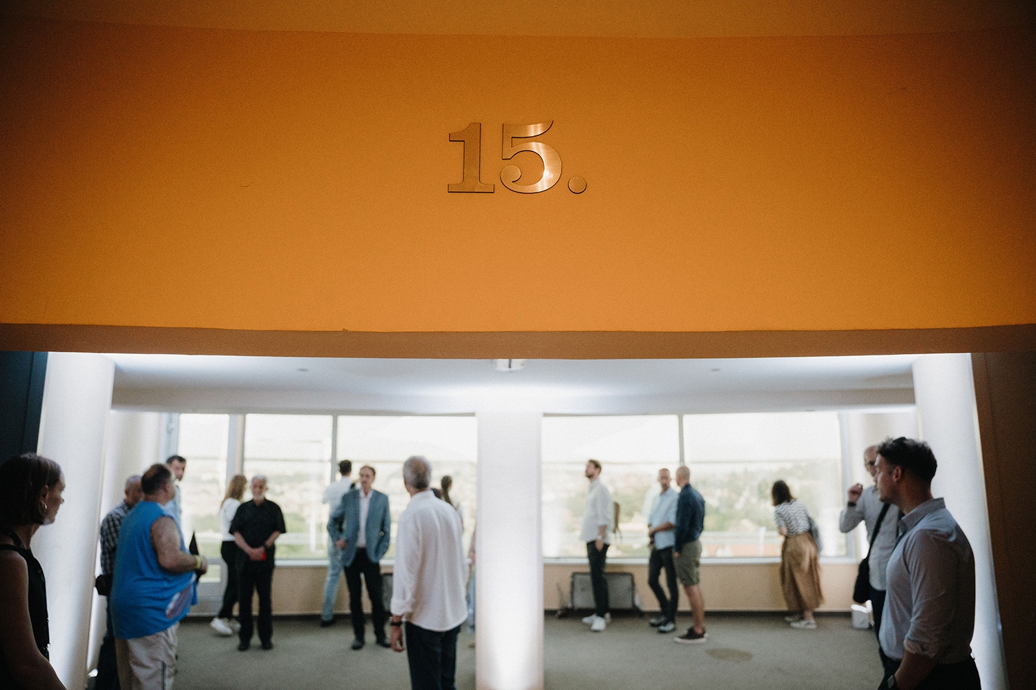 A szakmai blokkot követően a résztvevők a Körszálló új tervein dolgozó Közti építészei által vezetett bejáráson tekinthették meg az épület legfelsőbb szintjeiről a páratlan kilátást és bejárhatták az egykori szálloda különleges, retró hangulatú fogadóterét és az ikonikus, első emeletre vezető csigalépcsőt. Az eseményt a Do Work hangulatos kora nyáresti állófogadása zárta a teraszon.