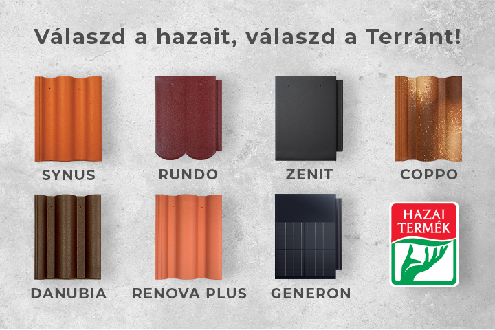 A Terrán Tetőcserép termékei magyar alapanyagokból, már több mint 100 éve készülnek Magyarországon, egy családi vállalkozás alapjain megerősödve és folyamatosan fejlődve. A márka 2021-től a Hazai Termék védjegyet használók büszke és tudatos körét erősíti.