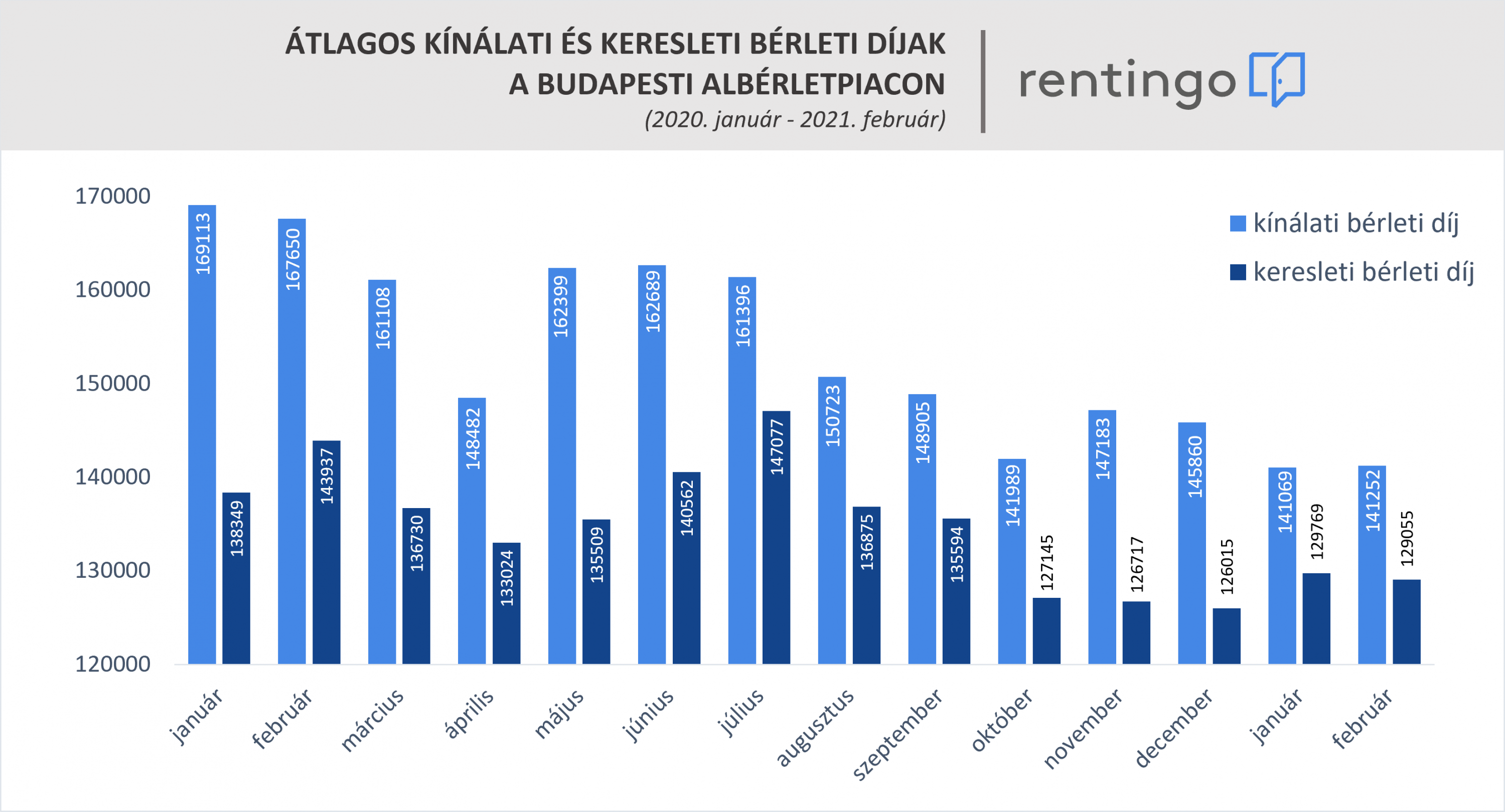A koronavírus-járvány első és második hulláma a budapesti albérletpiacot is felforgatta: a kínálat bővülése mellett a bérleti díjak egy év alatt 16 százalékkal csökkentek, az év elejére pedig a januári mélyponton stabilizálódtak – írta elemzésében az online bérbeadási platform, a Rentingo.com. Budapesten belül eltérő az áresés mértéke, míg a márciusban bevezetett újabb korlátozó intézkedések egyelőre nem gyakoroltak lényeges negatív hatást a piacra.