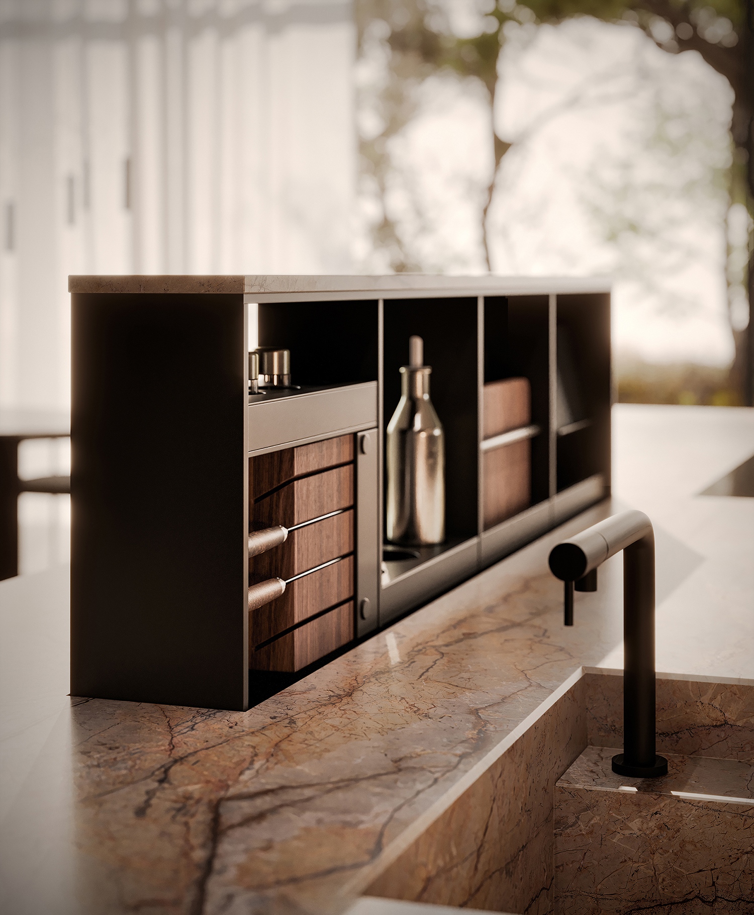 A Modulnova konyhaszigete nem csupán funkcionális elem, hanem a tér valódi ékköve. Egy lebegő sziget, amely a természet erejét és szépségét idézi meg modern formában – ez a dizájn új szintje.