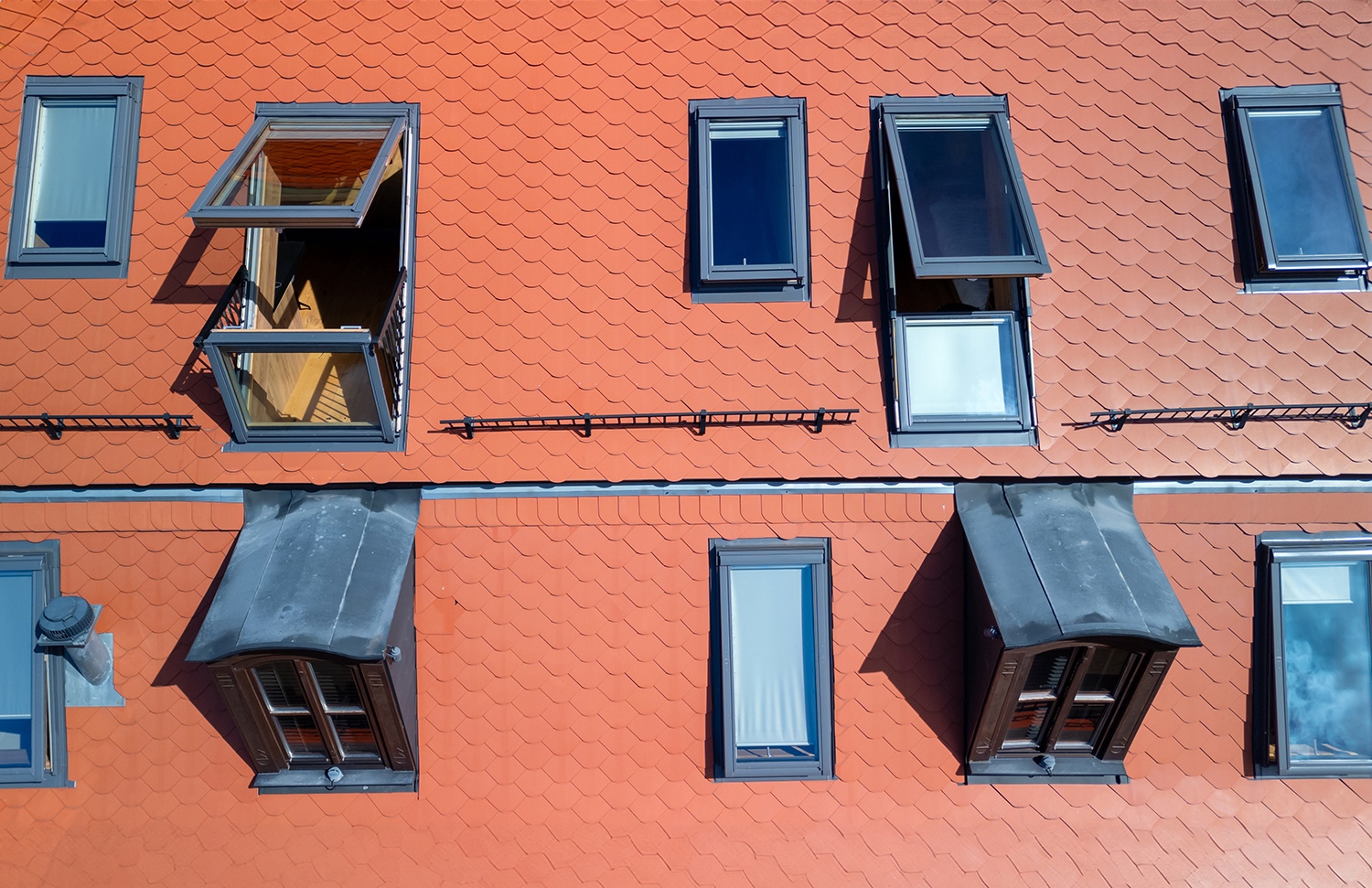 Figyelembe véve az általuk kínált előnyöket, egyértelmű volt a VELUX tetőtéri ablakok melletti döntés: fokozott biztonság, csökkentett hőveszteség és kiváló hangszigetelés. Emellett az ablakok harmonikusan illeszkednek az épület megjelenéséhez, anélkül hogy csorbítanák annak eredeti, autentikus karakterét.