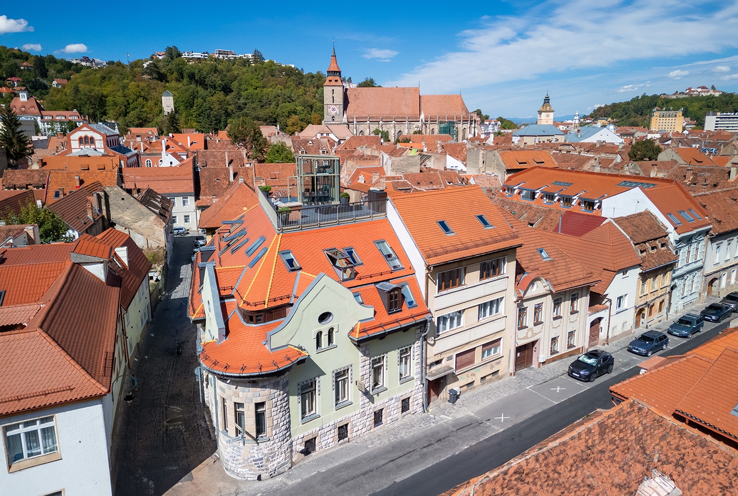 „A VELUX tetőerkélyek lehetőséget adnak arra, hogy a vendégek kilépjenek, és élvezzék a brassói óváros látványát. Sokan döntenek úgy, hogy reggel a friss levegőn, ezen a különleges helyen isszák meg a kávéjukat” – meséli Andreea Mereș, a Schuster Panzió értékesítési vezetője.