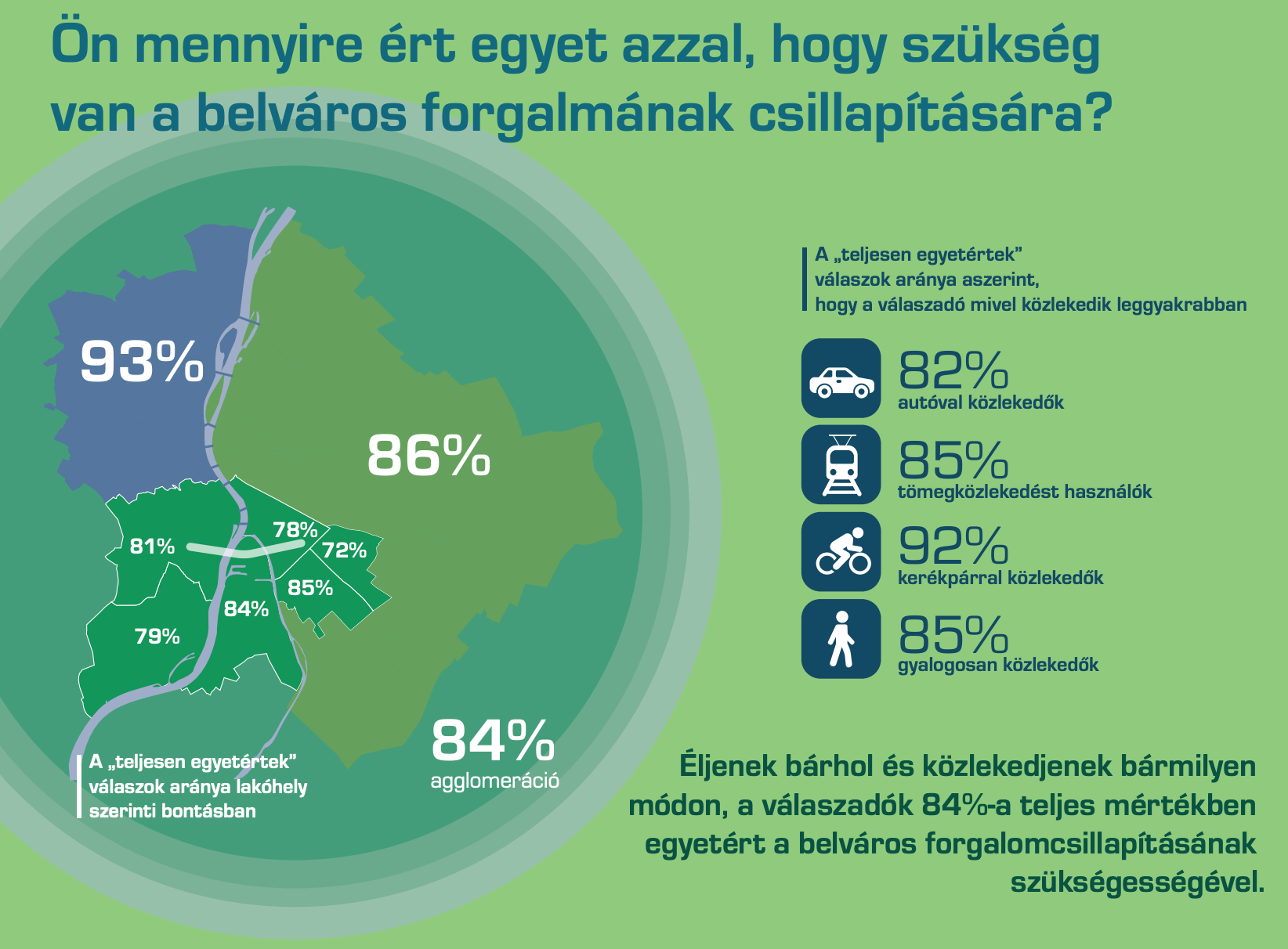 Mint írta, „a válaszadók túlnyomó többsége egyetért a híd megépítése kapcsán a belváros forgalomcsillapításának szükségességével, függetlenül attól, hogy milyen közlekedési módot használ. Még a leggyakrabban autóval utazók 82 százaléka is ezt válaszolta, a tömegközlekedést választók esetében 85, a kerékpározóknál 92, a főként gyalogosan közlekedőknél 85 százalék ez az arány.”