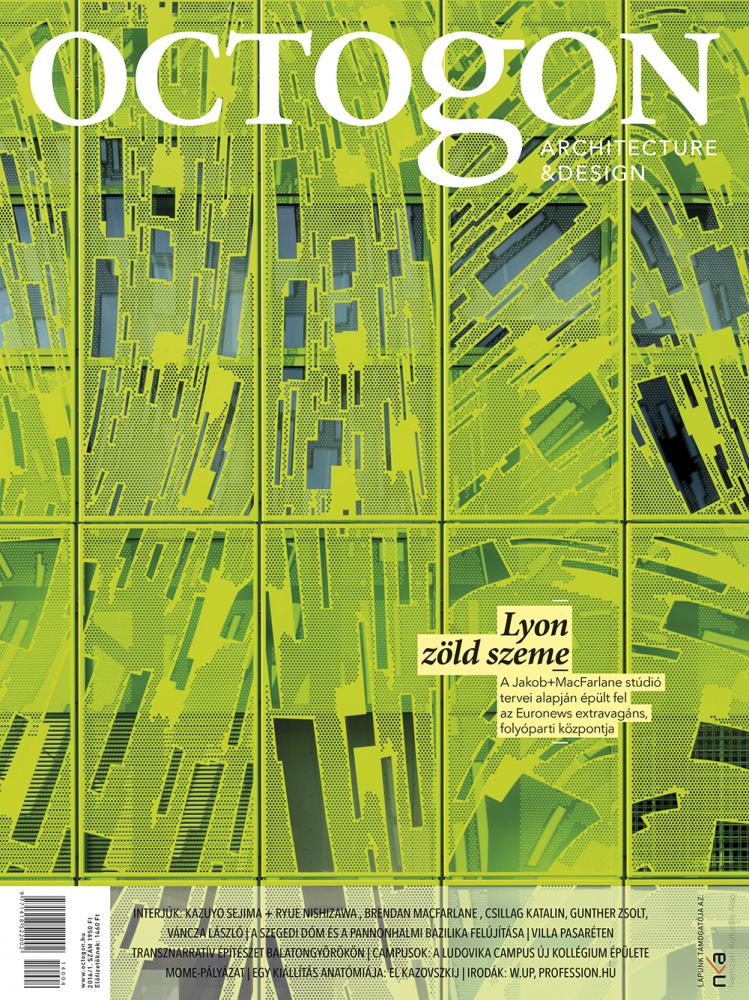 Lyon új látványossággal bővült, ezt a címlapunkkal is megünnepeltük: a vizuális izgalom tárgya az Euronews hírügynökség új, folyóparti főhadiszállása. A zöld, hálószerű fémköpeny extravagáns külsőt ad az épületnek. Tervezői, Dominique Jakoband és Brendan MacFarlane építészetükkel persze megidézik az Euronews tevékenységét is: hatalmas, „mindent látó szempár” pillant a folyó felé, a tölcsérszerű elemek homlokzattagoló és egyben funkcionális (szellőzést, benapozást segítő) részei is az épületnek. Nemzetközi kitekintésünkben egyúttal itthonra is pillantunk, az ÚJ Nemzeti Galéria terveit jegyző SANAA alapító-tervezőivel (Kazuyo Sejima és Ryue Nishizawa) Irimiás Balázs beszélgetett.
