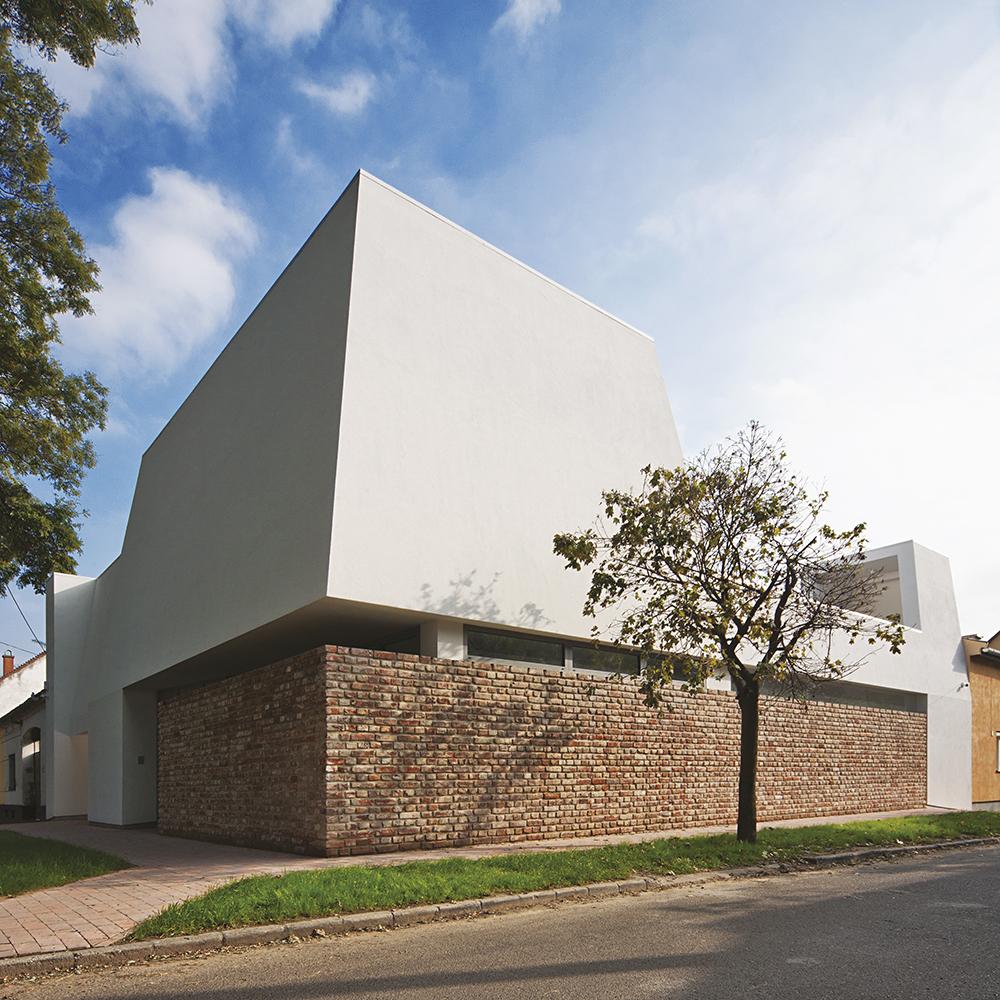 Kovács Péter debreceni építész legújabb épülete tulajdonképpen nem is illeszkedik a bevezetőben leírt műfajba. Nem családi házról van ugyanis szó, hanem az építész stúdiójáról, műterméről. A párhuzam annyiban mégis találó, amennyiben egy mélyen személyes, önreflexív, az építőművész szerepét a lehető legnagyobb árnyaltságban láttató, leíró alkotásról van szó. Mesélte, hogy a mostani lakásként és műteremként is használatos, ugyancsak saját tervezésű, Monti ezredes utcai otthonától egyetlen sarokra álló telek megvásárlásáról néhány óra alatt kellett döntenie. Ismerte a szomszédját, annak eladási szándékát, de szinte csak a mással megkötött üzlet előtti utolsó pillanatban merült fel, hogy miért is nem ő veszi meg az Ötmalom és Lőrinc pap utca sarkán álló ingatlant.