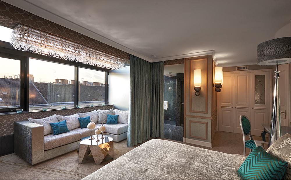 A belső körfolyosós ház gangját lezárható saját terasszá lehet alakítani. Mennyezeti stukkók, kandalló, elegancia, valódi ónix burkolat a fürdőszobában – mintha egy pompás régi palotában lennénk. A hátsó szobák a fiatalok számára készültek, pop-artos hangulattal, nyitott fürdőszobával. A Liszt lakosztály különlegessége a részben üvegtetős nappali és a hasonló fürdő. Kényelmes bútorokkal, párnákkal, növényekkel rendezték be a tetőteraszt, ahol pihenni és napozni is lehet. A Szent István Bazilika kupolája pazar díszlet esküvőkhöz, partikhoz egyaránt. Télen sem kell lemondani a csodás látványról, ha a fűthető étteremből élvezzük azt.