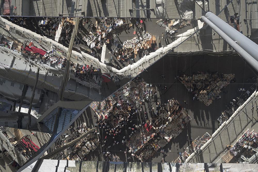 Az építészek elsődleges célja volt az infor-malitás élményének és a piac szabadtéri jellegének megőrzése és elhatárolódás a bevásárlóközpont-tipológiától. A háromemelet magas, spirálisan emelkedő utcáról, ami maga a nyitott elárusítótér, és a konténerre emlékeztető sorolt, íves fémkioszkokról már csak odabent veszünk tudomást. A térkezelés a legtöbb helyen a diffúz, beolvasztós technikát követi, nincsenek éles kontúrok vagy behatárolható térszakaszok, a lépcsőkből egyszer csak pad lesz, az utcából bejárat és a bejáratból észrevétlenül eladótér. Máshol a rámpából mozgólépcső, a földszintből emelet, ami jól imitálja a régi piac fluiditását.