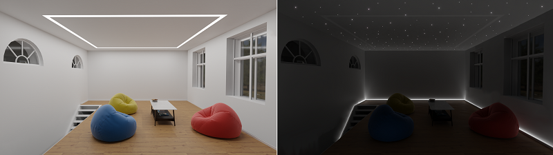 A függesztett-, sínes-, irányítható spotos megoldás a tér variálhatósága miatt volt fontos, és ezzel a megoldással egy átrendezés után is mindenhol biztosíthatóak a megfelelő megvilágítási értékek.