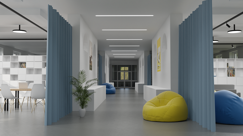 Az osztálytér kialakításánál fontos szem előtt tartani a koncentrációt elősegítő tényezőket, a rajzoláshoz és a makettezéshez ideális körülményeket, ezért az egyenletes és pontos színvisszaadásra fókuszáltak igazán, melyet sínes és irányított spot lámpatestekkel oldottak meg.