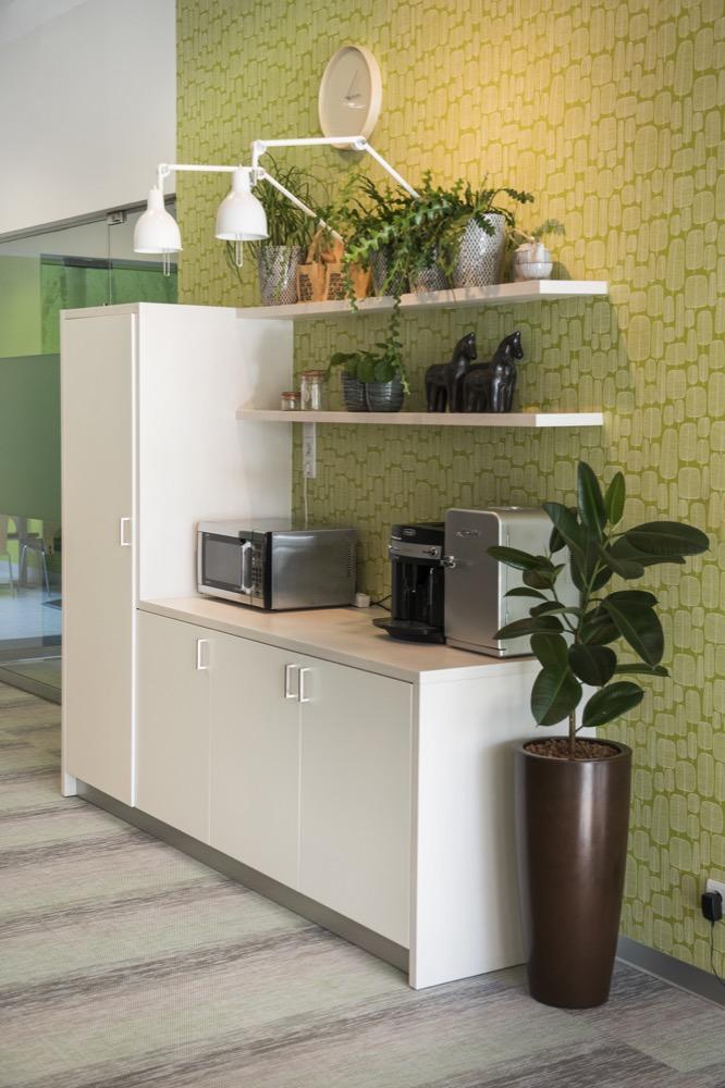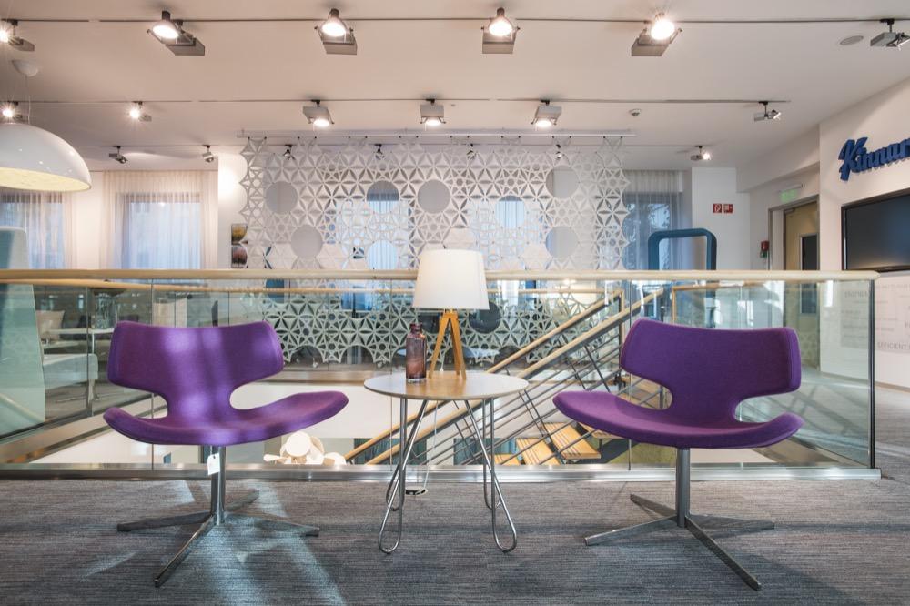 Az emeletre érve a Kinnarps Next Office koncepciójában fontos szerepet játszó funkcionális terek harmonikus keveréke nyűgözi le a látogatót. Az egyedi receptúra alapján kialakított munkakörnyezet ugyanis a dedikált munkaállomásokon kívül kreatív tárgyalószigeteket, csendes zónát, könyvtárszobát, „touch down” munkaállomásokat, break-out tereket és nyitott konyhát foglal magába.
