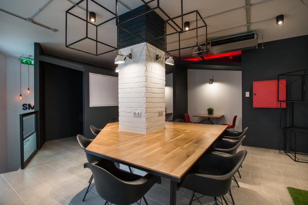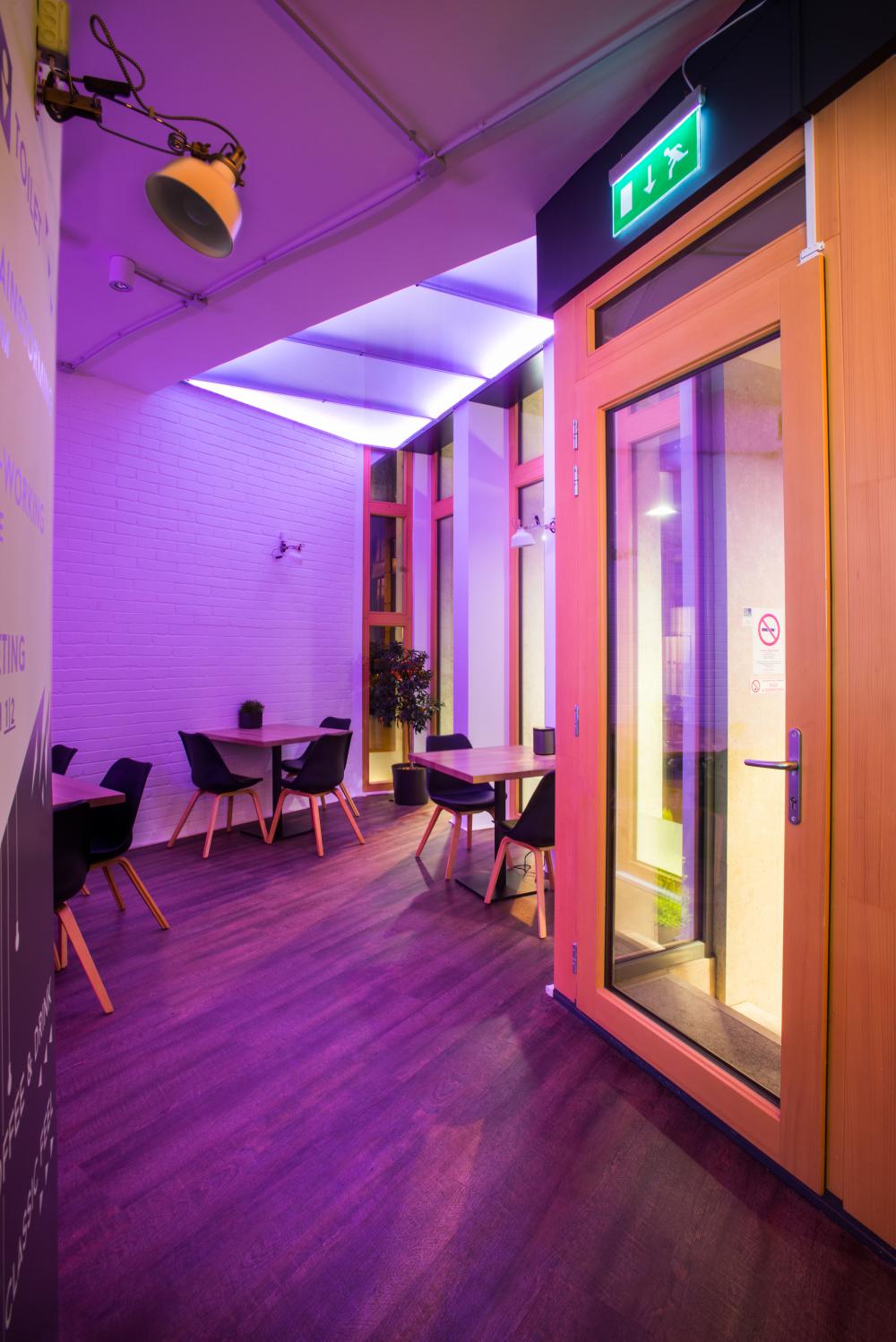 Ezt a kortárs, városias szórakozóhelyek és irodák belső tereinek belsőépítészetét egyaránt idéző elemek kötik össze, egyszerre jelennek meg az iparias megoldások nyers anyaghasználattal és a légies, könnyed színek, geometrikus minták. Az elrendezések, nyitottabb és zártabb térrészek váltakozása és a világítástechnika érzékeny hangolhatósága teszi igazán nyitottá, szabadon alakíthatóvá az egész helyet, ami ettől a felhasználók folyamatosan változó igényeihez tud tökéletesen alkalmazkodni és ettől képes egy kedvelhető, otthonos hellyé változni.