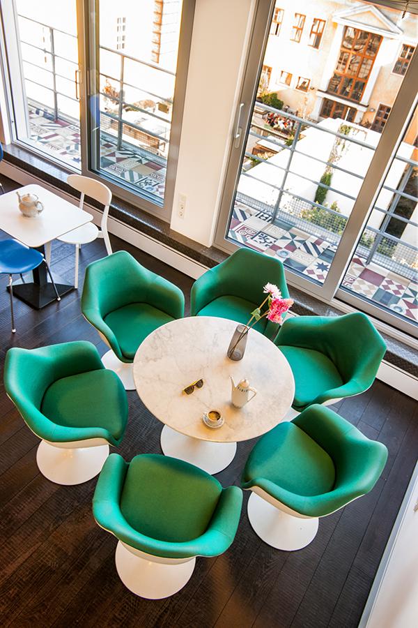 A közösségi bisztró és rendezvénytér kialakításáról a Loffice belső tereit is megvalósító kreatív csapat gondoskodott. Az enteriőr ezúttal is a Szupernova Design, a grafikai megjelenítés pedig Willem van de Ven holland grafikus munkáját dicséri.