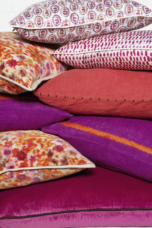 Kínálatunkban ezek közül elsőként a párnák és szőnyegek mutatkoznak be – ikat hatású, batikolt jellegű selymek, vibráló színű, szövött pamutok és harsány mintás lenvásznak formájában a párnák, illetve pamuttal kombinált juta formájában a szőnyegek esetében.