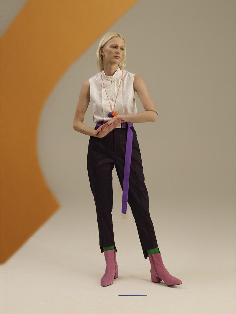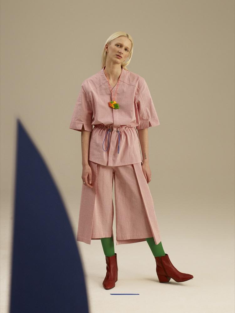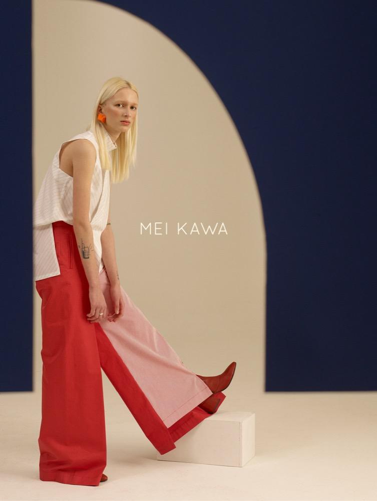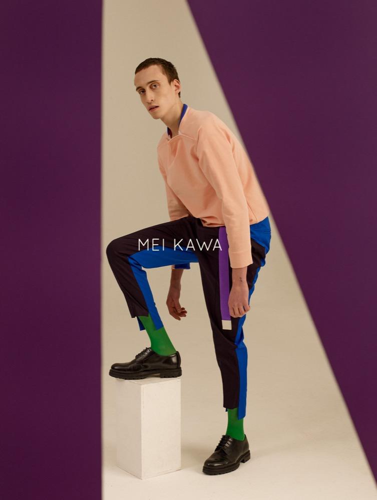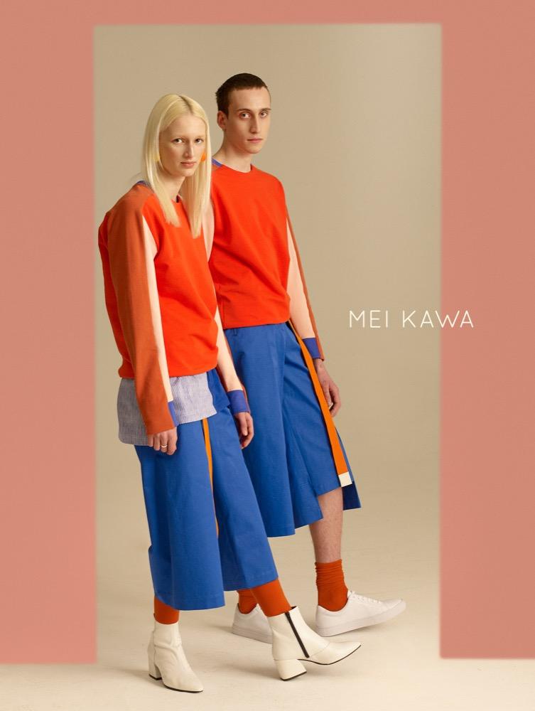 A MEI KAWA 2018-as tavasz-nyári kollekcióját a tiszta színek és a geometrikus formák alakítják. Az uniszex sorozat darabjai úgy működnek, akár egy szuprematista festmény, mely a telített színek és a mértani alakzatok tiszta harmóniáját ünnepli. A kollekció a 20. száza- di orosz festőművész, Malevich emberalakjait használja előképnek: az élesen feldarabolt sziluettek a teljes absztrakció útján meginduló festészet emberábrázolásait idézik. A ruhák rikító kék, meggypiros, amingó-rózsaszín és Mars-vörös árnyalataihoz olyan erős, higítat- lan színek társulnak, mintha frissen a tubusból nyomták volna.