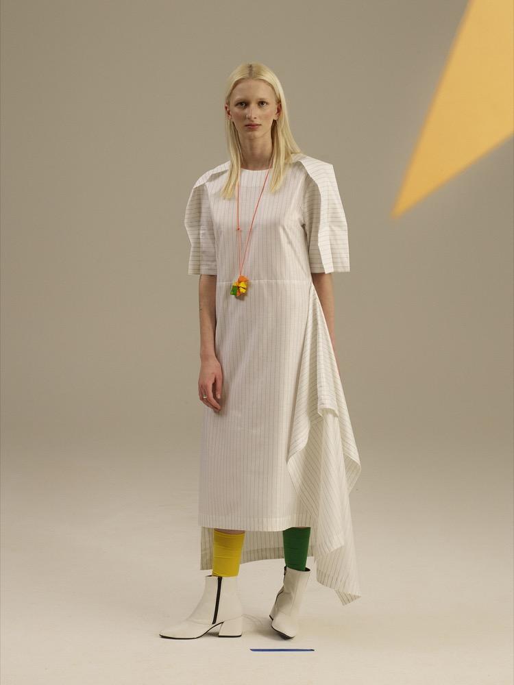 A ruhákhoz készült ékszerkollekció a Rebu Ceramics-al folytatott együttműködés eredménye. A harsány, gyurmaszerű darabok alapanyaga ligrán porcelán, mely tökéletes ellenpontja a puritán megformálásnak.