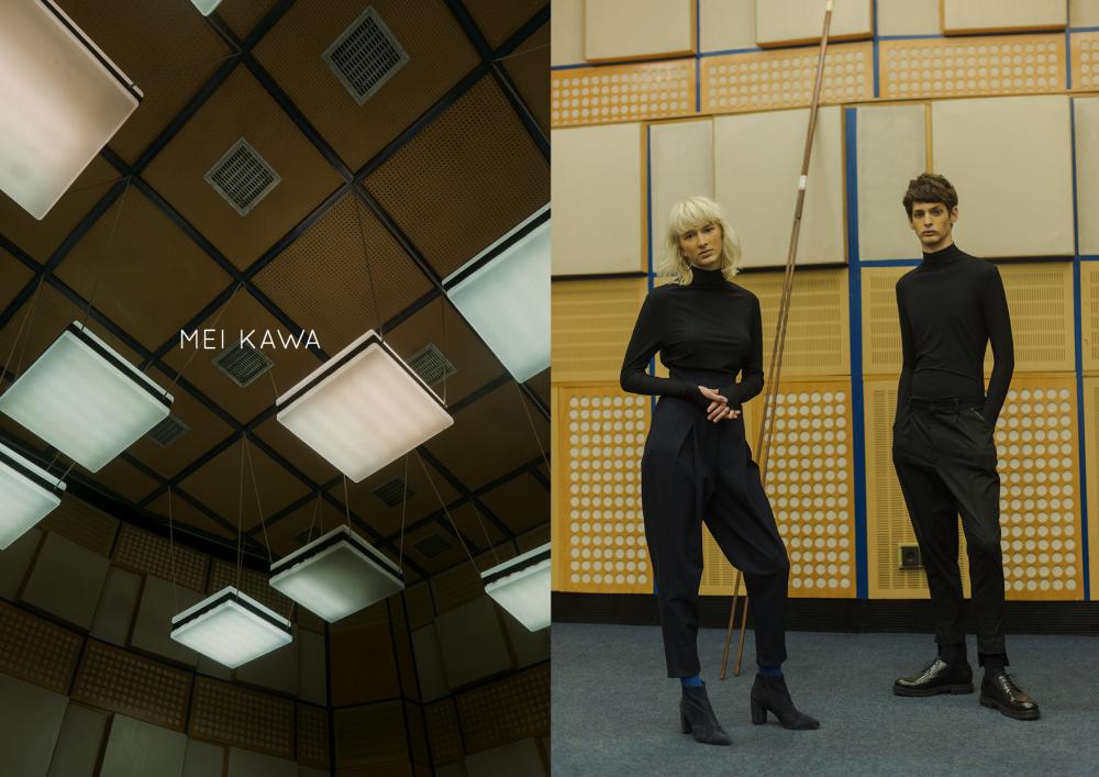 A MEI KAWA 2016/17 őszi-téli kollekciója ismét az épített terekkel lép párbeszédbe, ruhái egy magyar kultúrtörténeti hagyaték falai között mutatkoznak be. A Magyar Rádió használaton kívüli Stúdiópalotájának eklektikája tökéletes összhangban van a márka formavilágával, mely legalább annyit merít a magyar art deco eleganciájából, mint a szocializmus hőskorából.