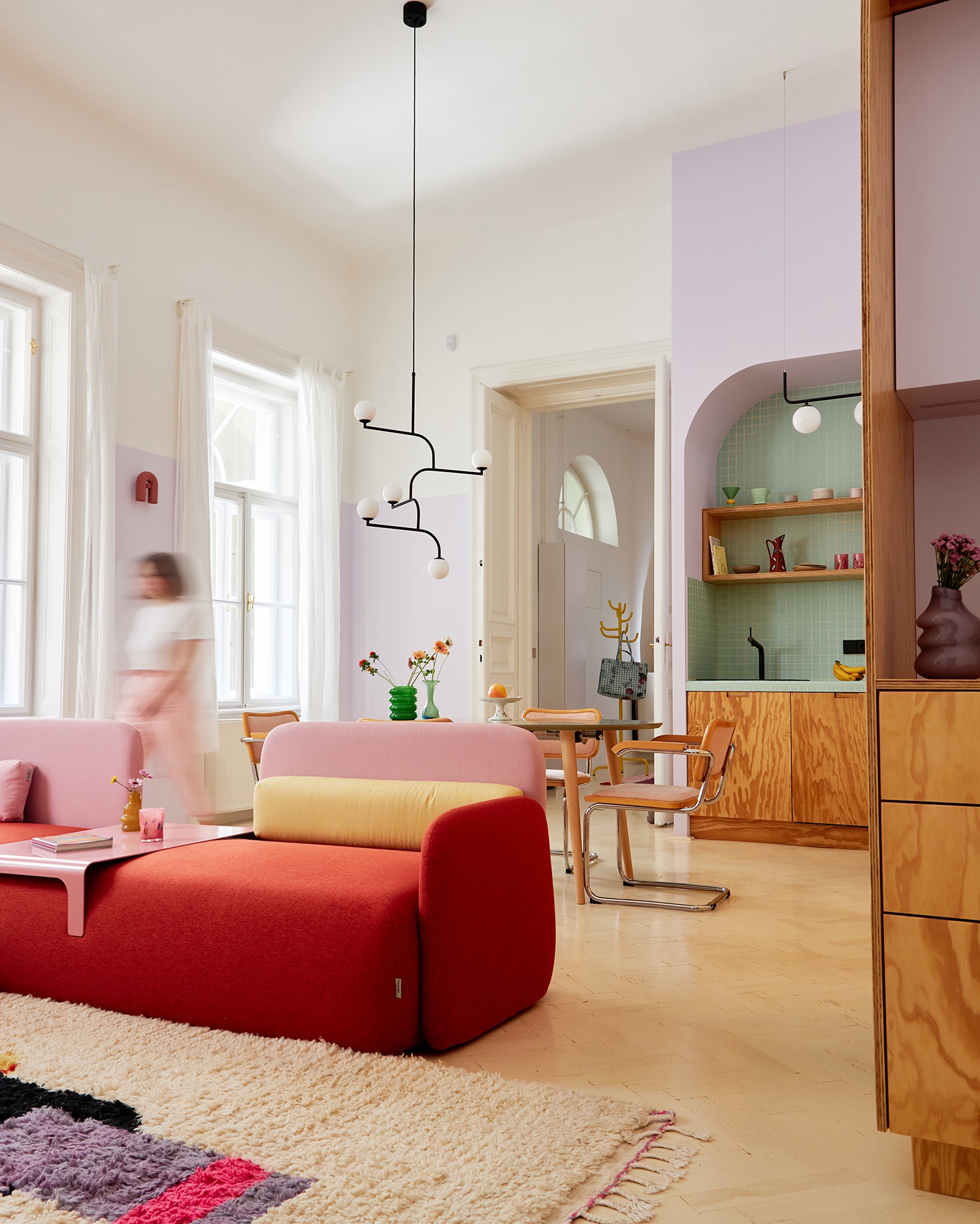 Üresség („kibelezés”) helyett a funkciók végiggondolt belső téri arányai jelenthetnek megoldást annak érdekében, hogy a nagypolgári lakások léptékéből, épített részleteiben lévő értékek se tűnjenek el. A Báthoryban a lepuhított íves keretezés és a színfoltok működnek olyan belsőépítészeti alapeszközként, aminek alkalmazásával egy-egy hagyományos térszegmensben is végrehajthatóak funkcionális váltások. Így optikailag és anyagminőségben is mintha „házak a házban, lakások a lakásban” ritmusok alakulnának ki. Erre is nagyszerű példa a csúszdás gyerekszoba, ami egyfajta esszenciájaként hat a korábbiakban leírtaknak: felszabadult, szabad, könnyed lubickolás a terek és tárgyak világában.