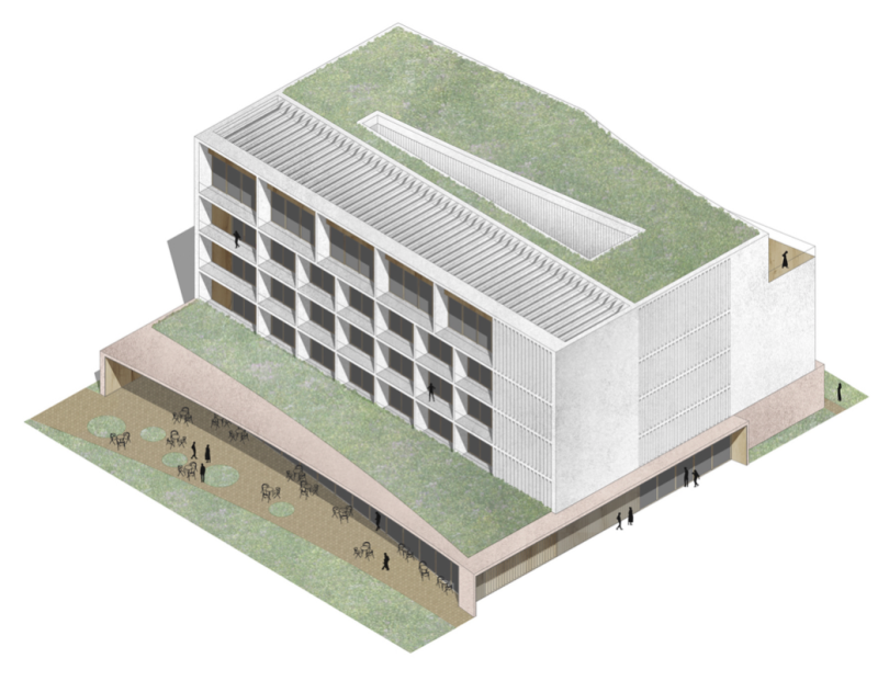 A Debreceni Egyetem UniGreen Hotel innovációs oktatószálloda, tankonyha és tanétterem tervpályázatán 3. díjban részesült a Hetedik Műterem terve. A pályázatot saját bemutatásukban közöljük.