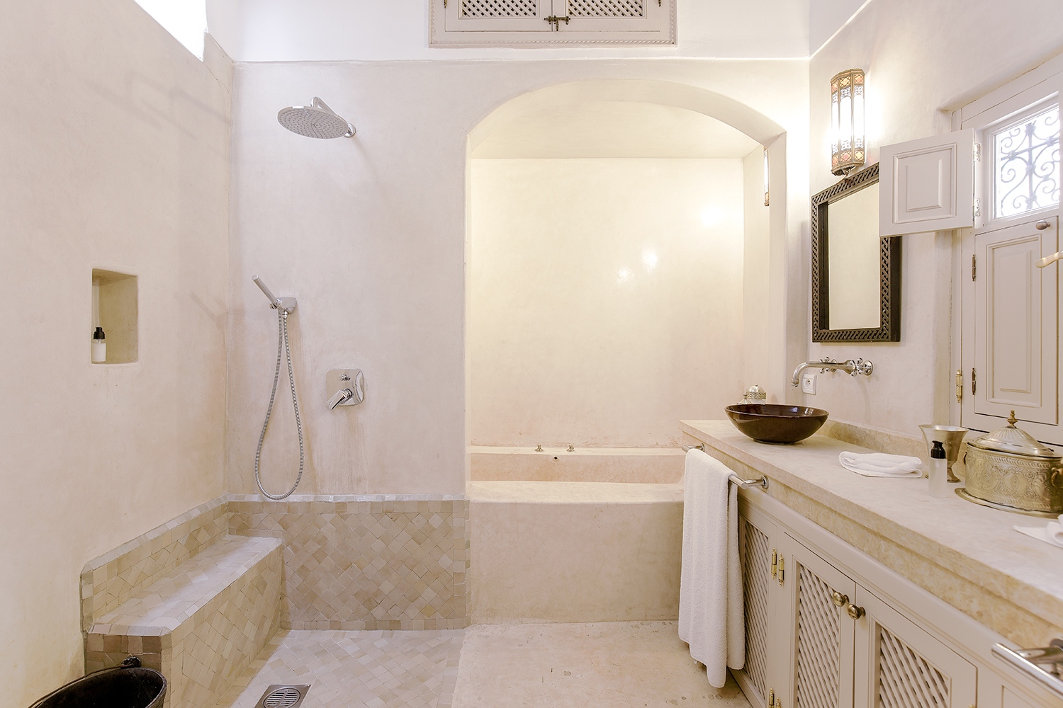 A Riad al Massarah építési ideje ismeretlen, de annyit tudunk, hogy egy gazdag kereskedőcsaládé lehetett, amit a két udvaros – egy nyilvános és egy privát – elrendezés is alátámaszt. A házat 2005-ben vette meg egy nyugat-európai pár, hogy elegáns, minimalista stílusban felújítva riadként üzemeltesse. A minimalista errefelé egész mást jelent, mint nálunk. Leginkább azt, hogy a helyi dekorációs hagyományokból ízlésesen és szűkszavúan válogatva alakították ki a belső teret.