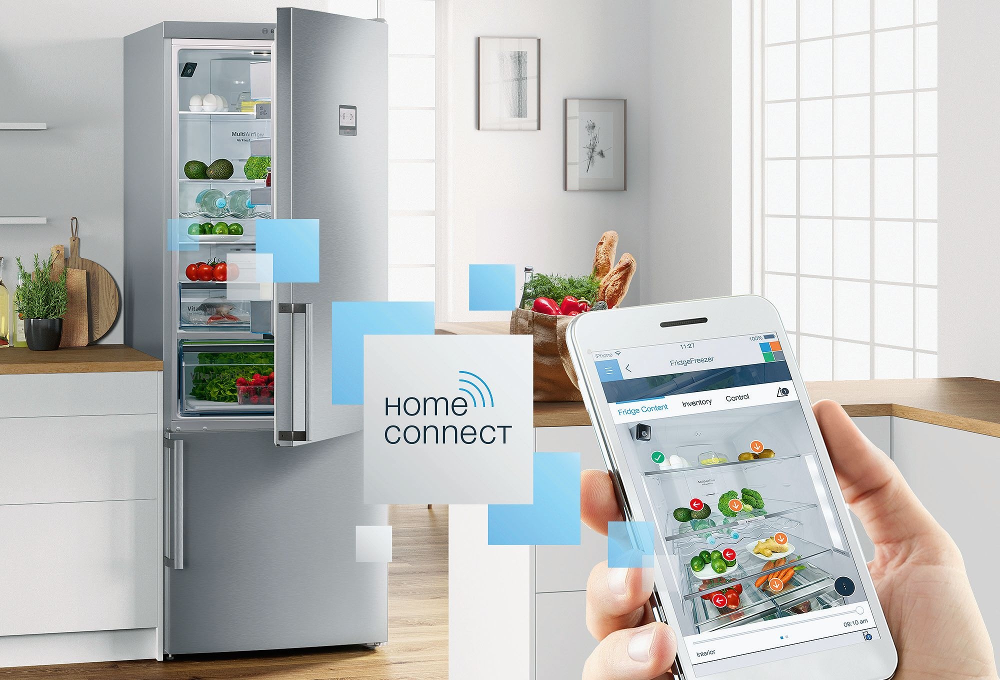 A Smart Food Management funkciónak és a Bosch hűtő kameráinak köszönhetően a mobilapplikáció tanácsokat ad a hűtőben tárolt zöldségek, gyümölcsök tárolási módjáról, helyéről, sőt, ezeket az információkat felhasználva ajánl recepteket is, és ha ez nem lenne elég, a leltárfunkció még a szavatossági időről is rendszeres értesítést küld. (BOSCH)