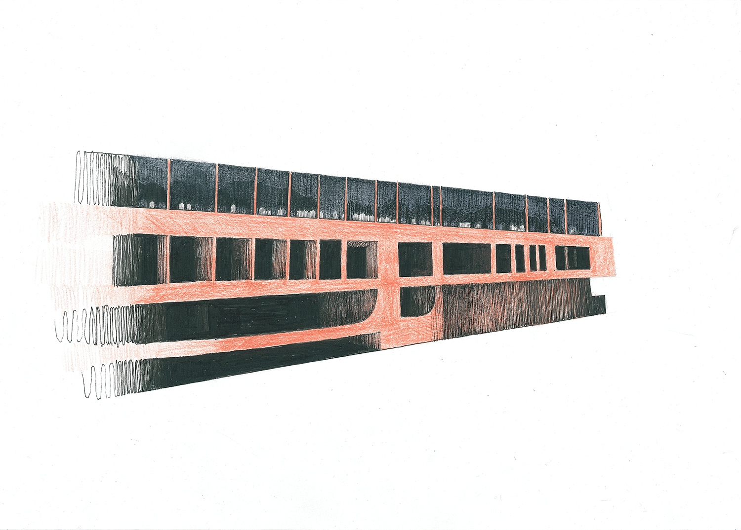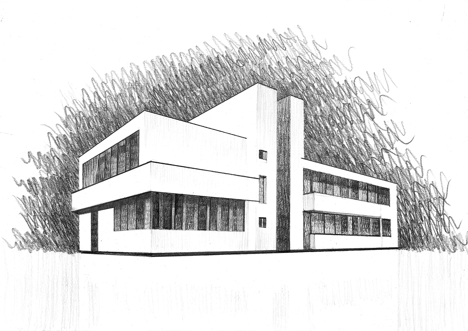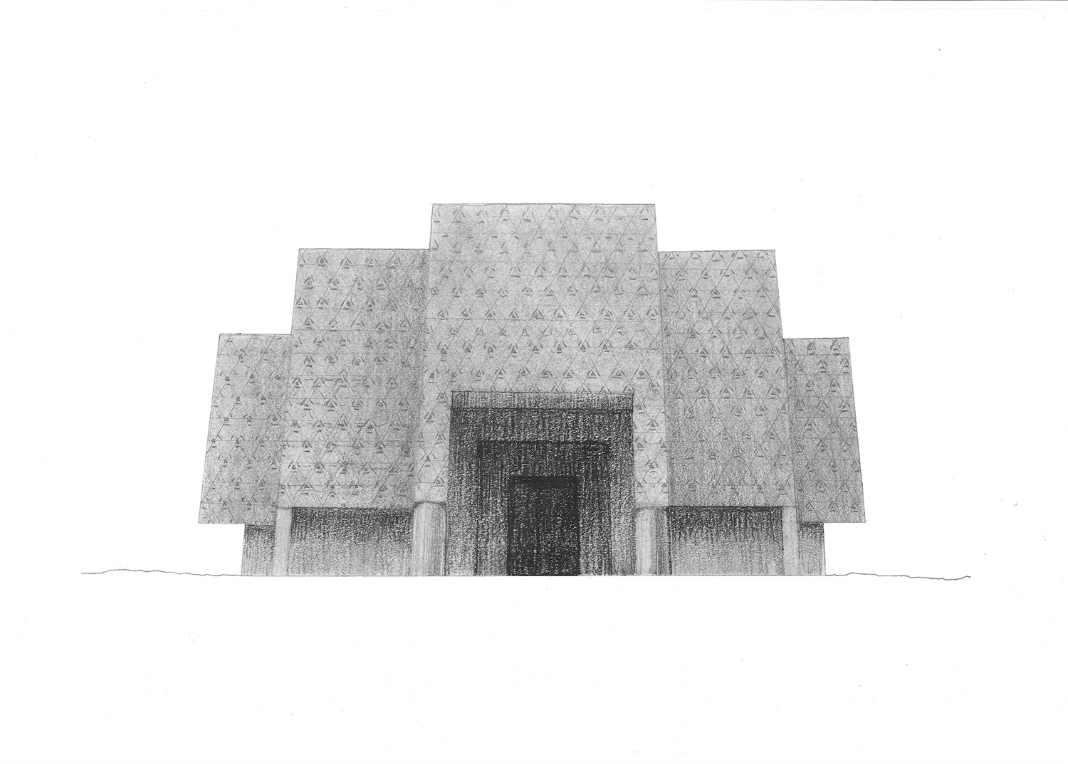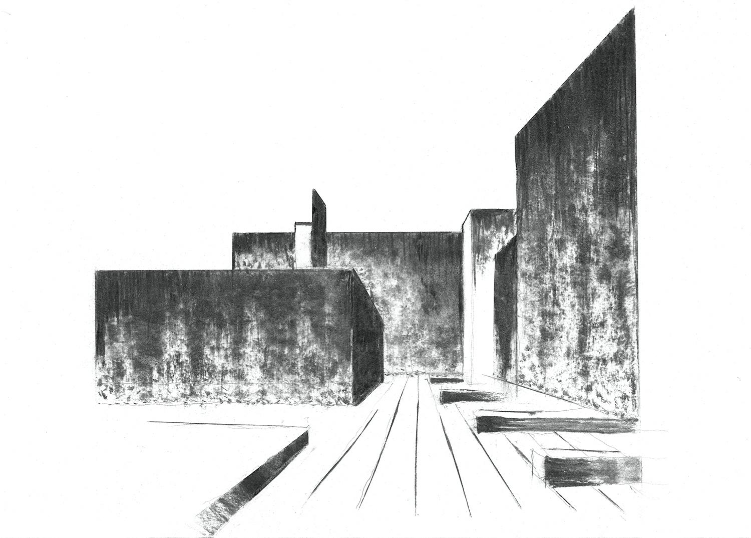 A beszélgetés végén elővesz egy lapot. Vékony ceruzavonalak, árnyékolt rétegek, egyetlen néma forma. Megállunk fölötte. Mint egy épület előtt, ami nem harsog, de visszanéz.