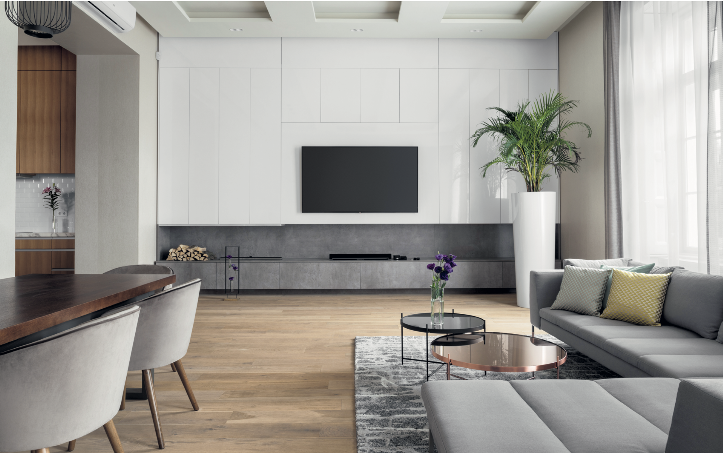A tulajdonos számára a legfontosabb szempont az volt, hogy semmi ne legyen szem előtt. Ezt beépített szekrényekkel oldotta meg a tervező – a változatos felületek mögött hatalmas tárolók bújnak meg. „Imádom, hogy amikor megérkezem, áttekinthető és letisztult rend fogad” – mutatja Viola.
