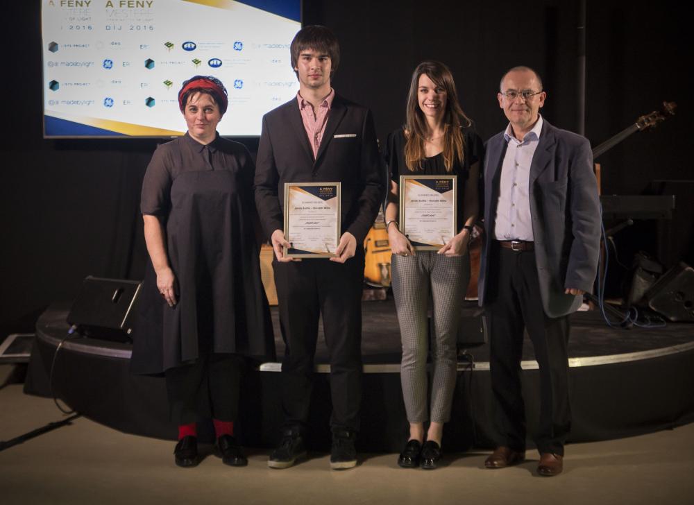 Junior Master of Light 3. díját Jakab Zsófia - Horváth Attila érdemelte ki, "OptiCube" című pályaművével. Az oklevelet Müller László az ERCO Lighting GmbH Magyarországi Kereskedelmi Képviseletének vezetője és Haász Ferenc a zsűri tagja adta át.