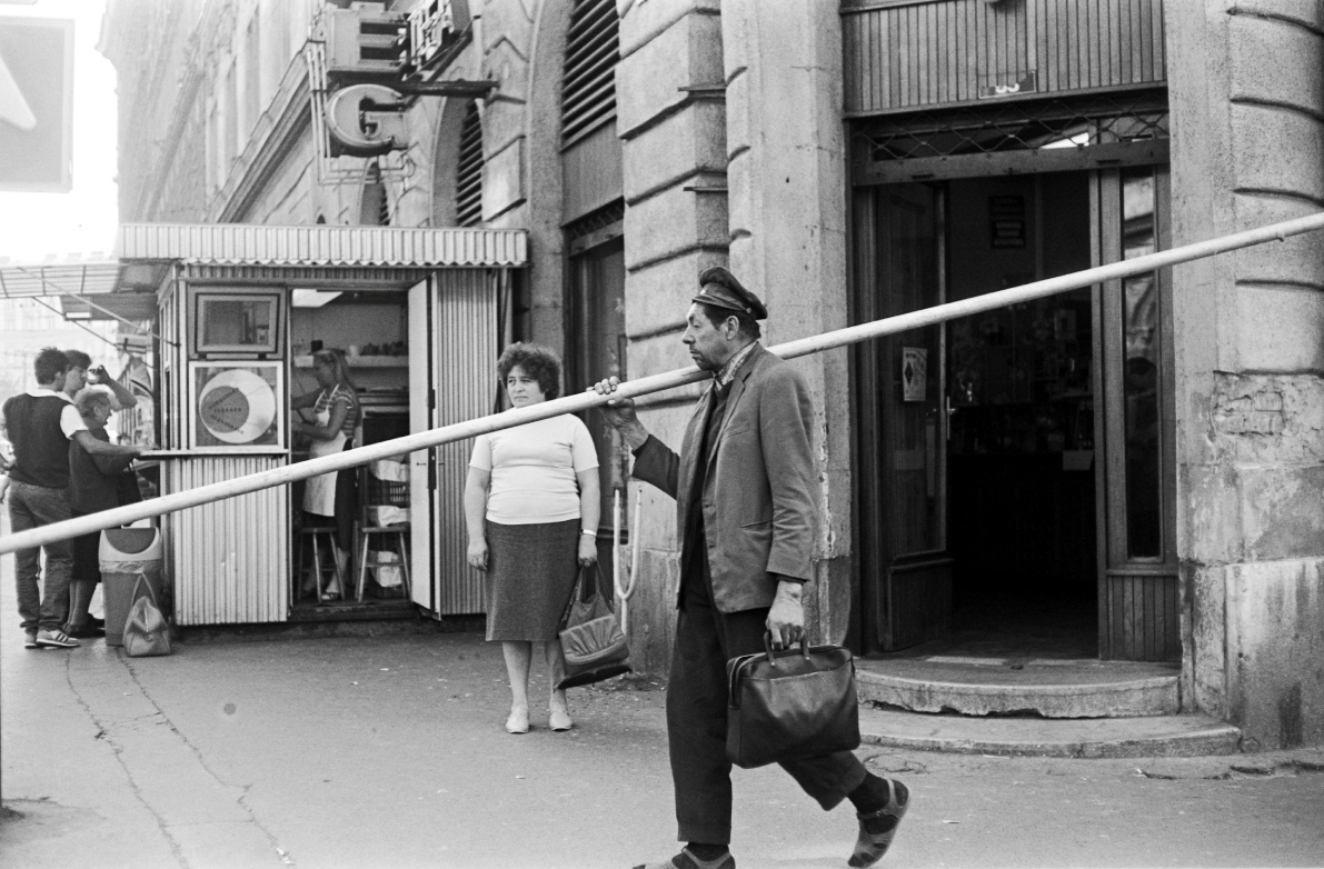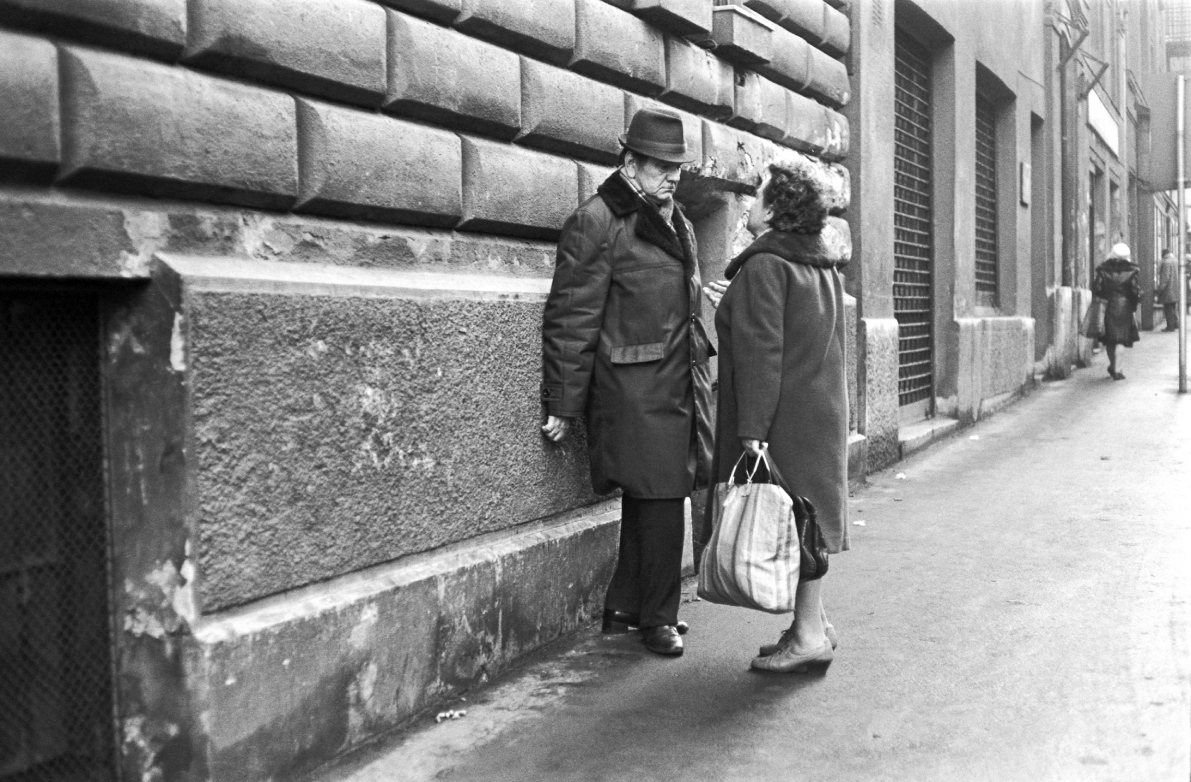 „Semmit sem tervezett el előre, hogy csak az intuíciója vezesse. Úgy járta az utcákat, mint egy rendező, aki jeleneteket gyűjt a forgatókönyvéhez. Ennek köszönhetően csodálatos, játékos, olykor tragikomikus helyzetekbe botlott bele. Alkalmi jeleneteket fotózott az utcán, az emberek testbeszédére, egy-egy póz vagy tekintet kifejezőerejére összpontosítva, melyben megtalálta a mélyebb jelentést. Fotóival felnagyította ezeket a helyzeteket, néha egészen abszurd arányokig. Vagy éppen ellenkezőleg, megőrizte azok kis léptékét, az emberi viselkedés vagy a finom gesztusok iránti vonzódással, amelyekben megható részletek nyilvánulnak meg. Mint kis fordulatok egy nagyobb történetben. Visszatekintve, a sorozat olyan, mint egy átmeneti korszak emlékműve. Egy olyan korszaké, amely a végéhez közeledett egy olyan városban, Európa szívében, amely leharcoltnak tűnt, nyögött, recsegett és ropogott a történelem súlya alatt, de ahol végre remény volt valami újra” – emeli ki Claudia Küssel a kiállítás kurátora.