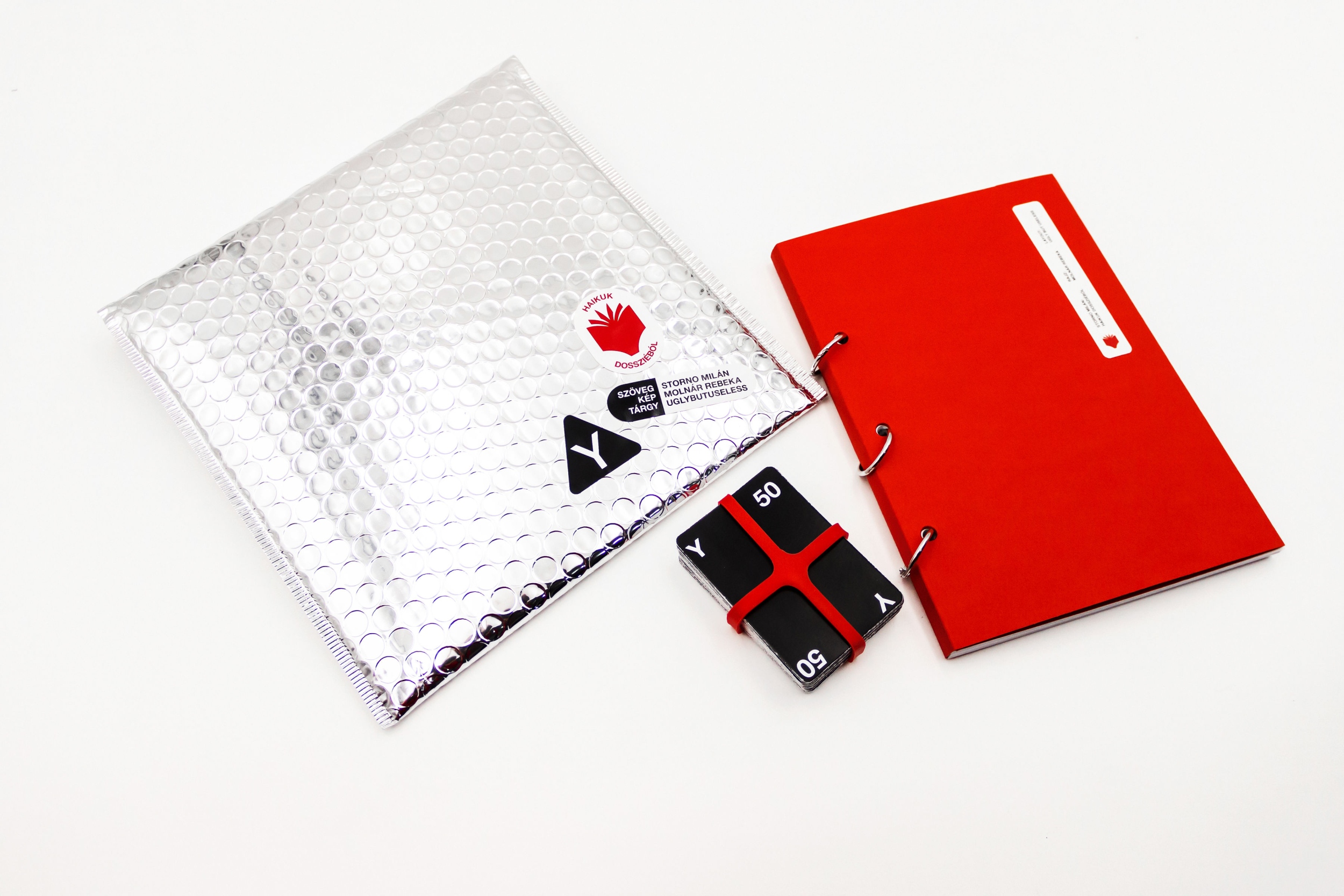 „Az Y – Haikuk dossziéból esetében az irodalom, a design és a képzőművészet nem alá- vagy felé-, hanem mellérendelői viszonyban van. Kép, szöveg és tárgy komplex egységet alkot, ez pedig – a hagyományos könyvkiadással ellentétben – a tervezés teljes folyamatára jellemző volt. Ezért jött képbe a független kiadás és az éppen elinduló Brancs közösség, Magyarország első közösségi finanszírozási platformja. Kíváncsiak vagyunk, hogy sikerül-e ilyen formában eljutnunk a kiadásig. A késztermék már a kampány kezdete előtt összeállt, a pénz tulajdonképpen a nyomda- és postaköltségre kell” – tette hozzá.