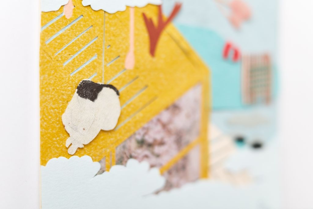 A január 13-án nyíló kiállításon Otthonka című sorozata mellett a „8 felhő emel” újrahasznosított papírképei lesznek láthatók, amelyek Tóth Kinga és Tóth Réka Ágnes költőkkel kollaborációban, az ő szövegeikre építkezve jöttek létre, egy többhetes, közös alkotási folyamat eredményeképp.