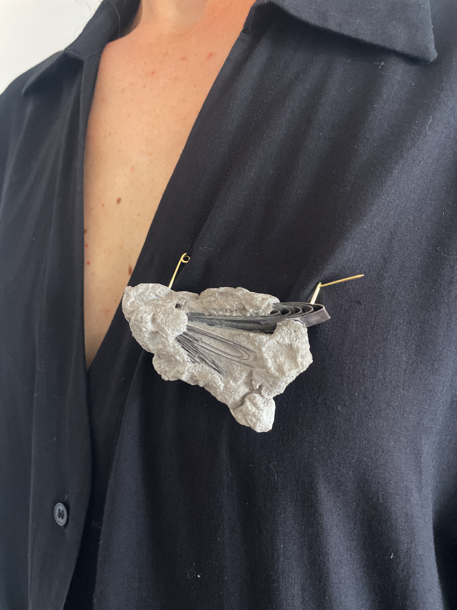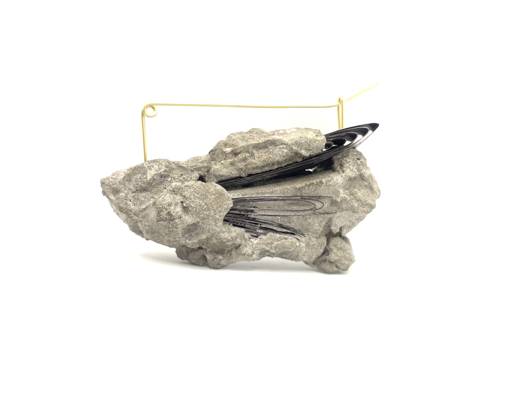A cementből öntött bross esztétikája egyszerre nyers és lírai. A kő formából finom nemesfém rétegek sejlenek fel, amelyek a beton alatt szunnyadó értékekre, valamint arra a jelenségre utalnak, amikor a növények a masszív anyagon keresztül is próbálnak növekedni: „az élet mindig megtalálja a útját...” – vallja az alkotó.
