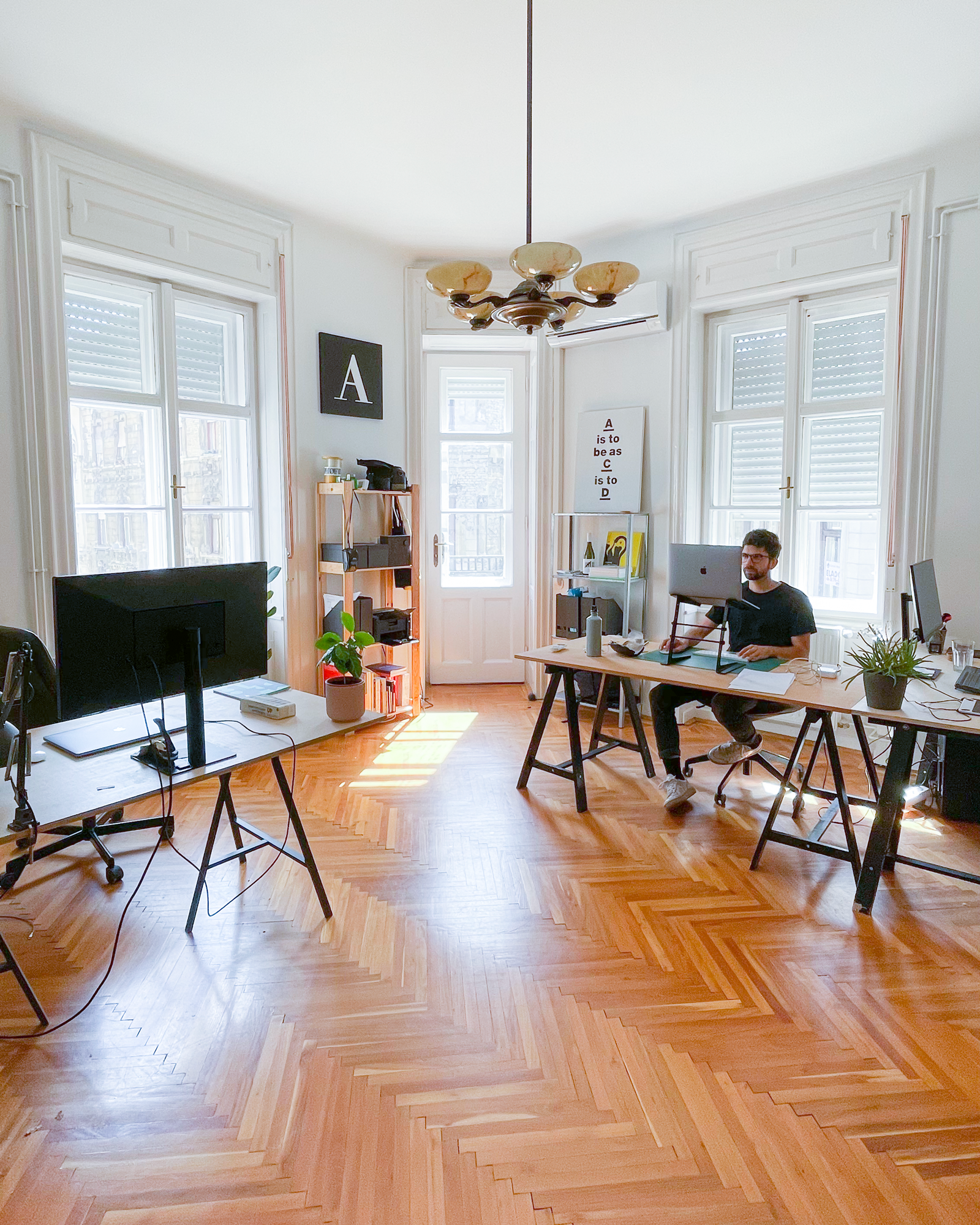 A Magyar Képzőművészeti Egyetemen végzett tervezőgrafikus testvérpár néhány éve még Laki Eszter (studio NUR) helyére költözött be a Fővárosi Szabó Ervin Könyvtár szomszédságában székelő akkori Flatlab közösségi irodába, ahonnan aztán először a Nyúl utcába mentek tovább. Ott egy óriási nagypolgári villa középső lakását bérelték, aminek bár szuper terasza volt, a téli hideget nem bírva végül újra visszatértek Pestre.