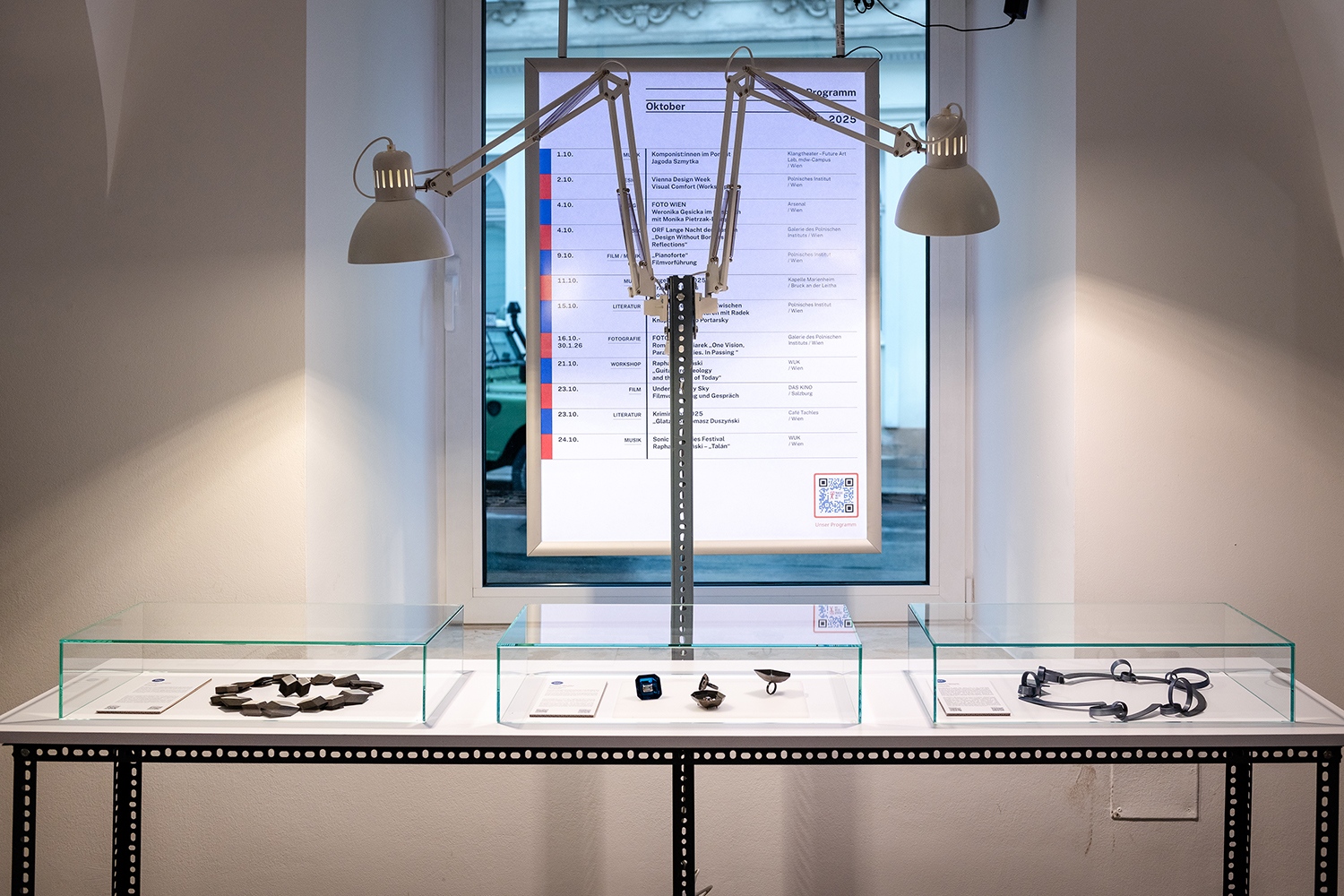 A Vienna Design Week programjának keretében látható különleges összművészeti élményt kínáló Design without borders – Reflexiók című kiállítás keretében cseh, lengyel, magyar osztrák, román, szlovák és szlovén textilművészek és ékszertervezők reagálnak kortárs zeneszerzők műveire. A válogatás újszerű, műfaji és országhatárokon átívelő kulturális innovációként valósul meg 2025. szeptember 27. – október 5. között, amelyen 19 textilművész, 15 ékszertervező alkotása és 16 kortárs zeneszerző műve szerepel.
