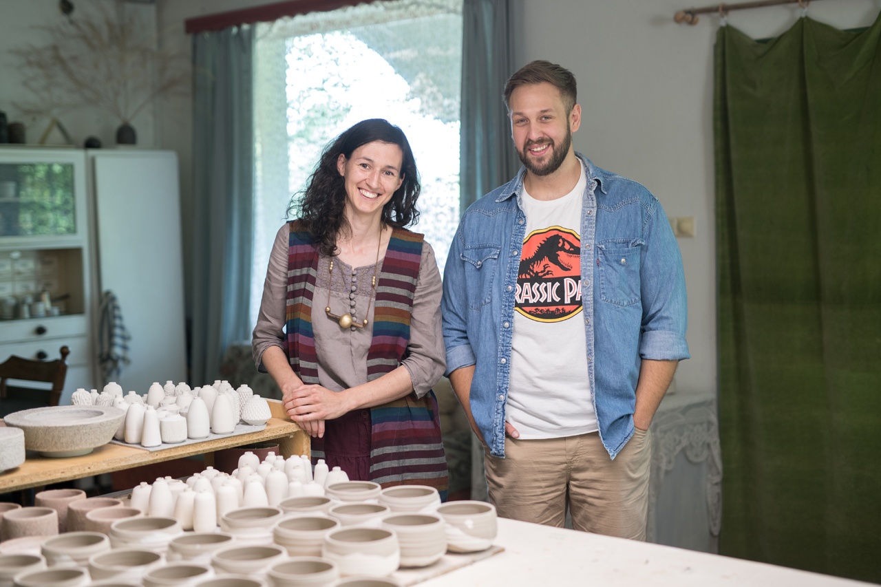 A kerámia szerelmesei most egyszerre két alkotóval is találkozhatnak: Kontor Enikő és Szabó Ádám Csaba közös műhelyükben várják az érdeklődőket. Budatétényi stúdiójuk valamennyi szegletében kerámiák sorakoznak égetésre, mázazásra vagy kiszállításra várva. Ha valaki szeretne többet megtudni a fatüzes égetésű kerámiákról, a tervezés és a kivitelezés folyamatairól, és kíváncsi arra, mi minden meglepetéssel szembesül egy tervező, mikor égetés után kinyitja a kemence ajtaját, annak Budatétényben a helye.