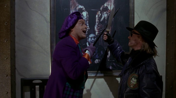 A buli csupán akkor akad meg egy pillanatra, amikor az egyik huligán egy machetével próbálja megvágni Francis Bacon Figure with Meat című 1954-es képét. Joker azonban hirtelen odanyúl a sétapálcájával, és azt mondja: