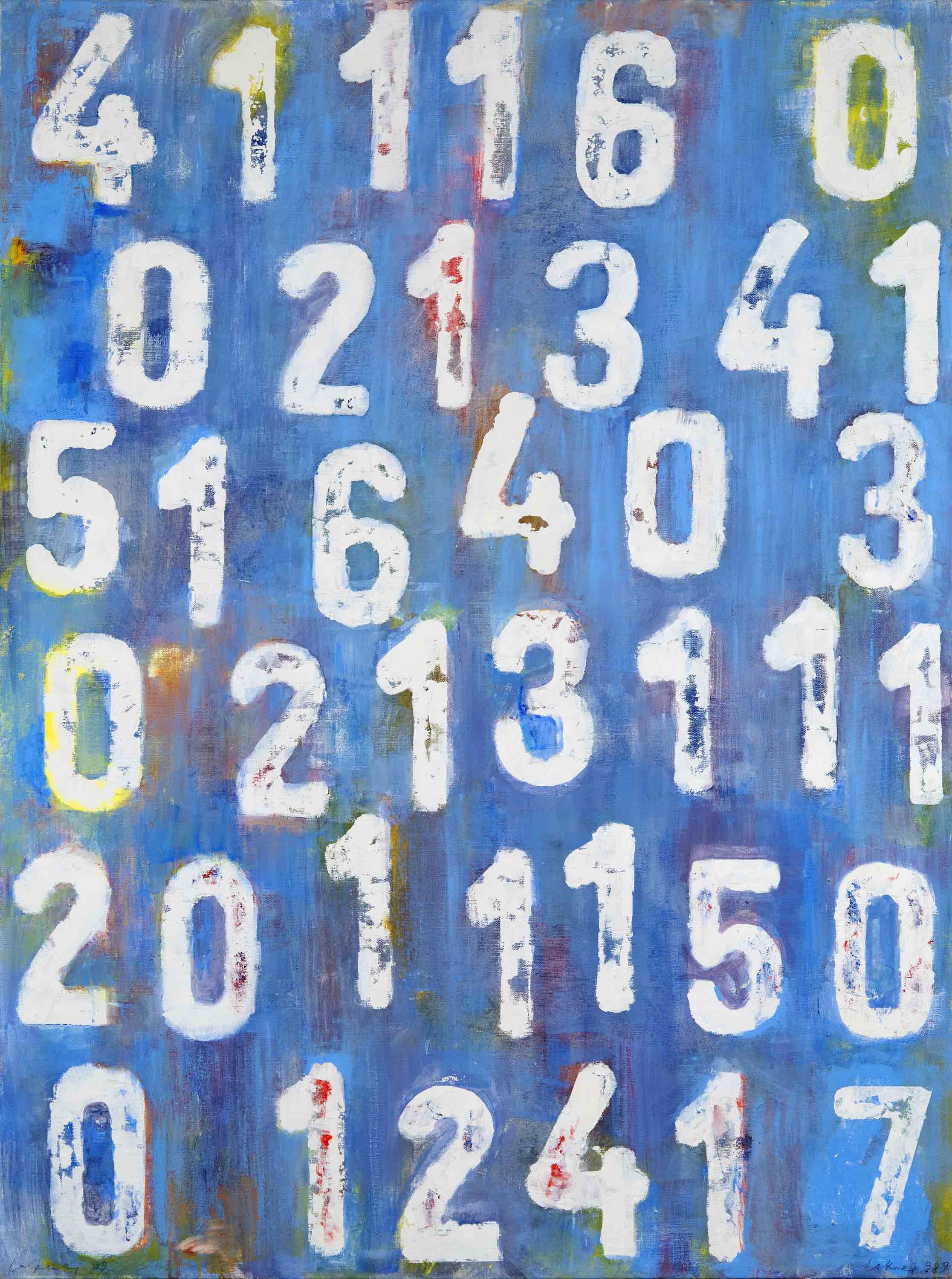 Lakner László a nyolcvanas-kilencvenes évek folyamán készült, úgynevezett szám-képei az avantgárd költő, Paul Celan művészetére reflektálnak. Az aukción 10 millió forintról induló Számok (1989-1991) című festményen fehérszínű, nagyméretű, kissé kopottas számok töltik be a teret, a korábbi képekre jellemző fekete alapot azonban immáron színes váltja fel, amely leginkább Monet tavirózsa-festményeinek színkompozícióit juttathatja eszünkbe.