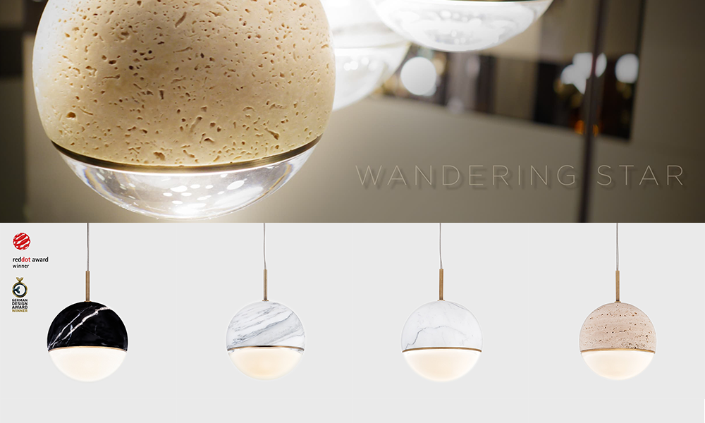 A VISO Wandering Star visszafogott, mégis letaglózó eleganciát tükröz: a márványból készült felsőrészt szálcsiszolt bronzszínű fémrészletek ölelik körül, a káprázás elkerüléséről pedig a matt, gömbölyű formára öntött, üveglencse gondoskodik. A Wandering Star egyedüli világítótestként is megállja a helyét, de a színek és kábelhosszúságok variálásával szemet gyönyörködtető kompozícióvá varázsolható. Annyi biztos, hogy nem véletlenül lett Red Dot Award és German Design Award győztes.