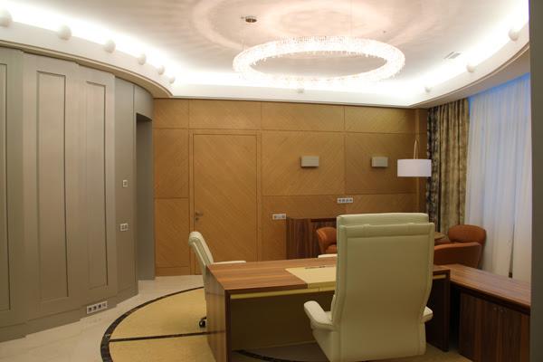 Lighting is an important feature of the interior design as it is like an arrow that draws your eyes up in the space. You could only recognise the volume of the interior with it. The office is very elegant and dignified on its own and our Looop and Ozero chandeliers emphasise this vibe. The project is made by Edelweiss Koroleva from ArchSolutions.