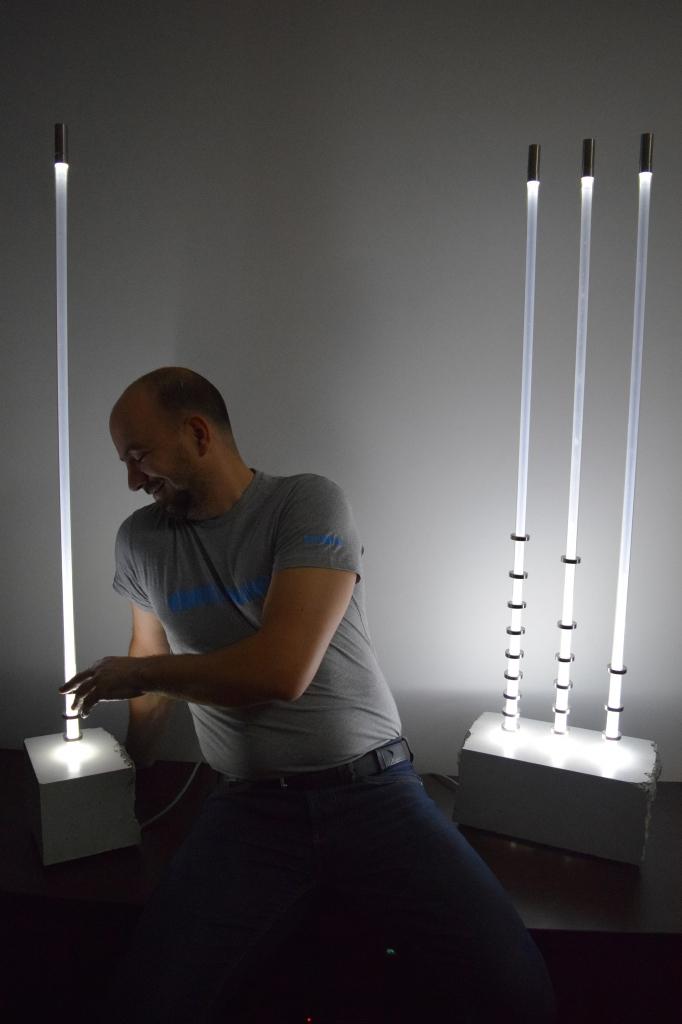 Kiss Dorottya fémműves MA diplomamunkája egy innovatív működtetésű lámpa szett.