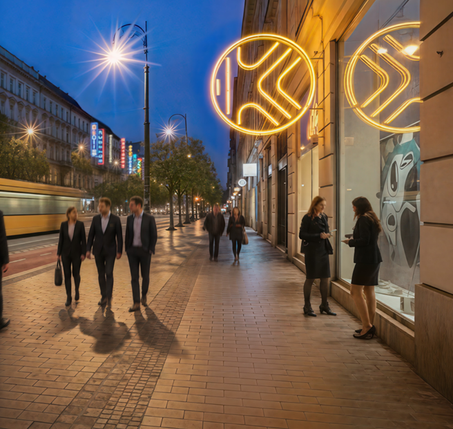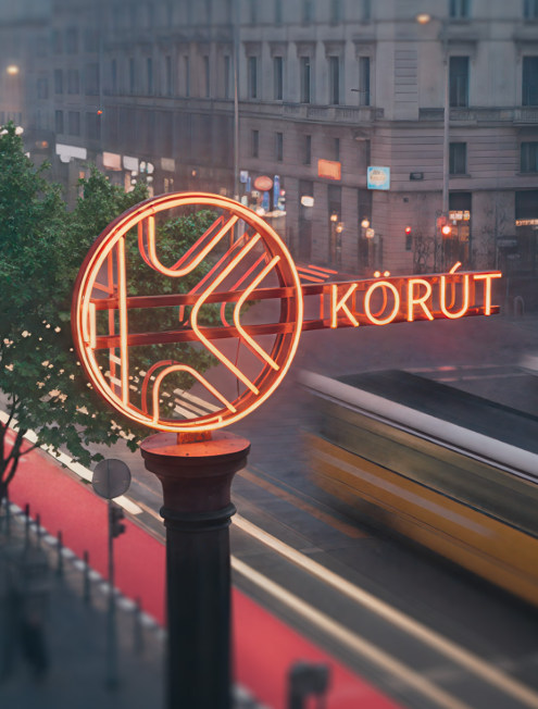 A neon nem csupán fényforrás: identitás, múltidéző és városi hangulatkép. E gondolat hívta életre az általunk javasolt arculati koncepciót, amely klasszikus neon-esztétikát épít be a Körút megújuló vizuális világába – kulturális örökségként és jövőformáló városi élményként egyaránt.