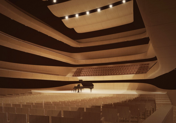 Az 1600 fős koncertterem és a 350 fő befogadására alkalmas kamaraterem akusztikai kialakítása az Arató Akusztikai Kft. és a dán Gade & Mortensen Akustik A/S közreműködésével készült. A Gutowski Robert építész által vezetett csapat pályázati tervében egy világszínvonalú hangversenyterem létrehozását célozta meg, mely pragmatikus épített és városi környezetével, pulzáló közösségi programjaival szervesen integrálódik a város kulturális életébe. Az alkotóközösség az elismerést a magyar építész- és mérnöktársadalom sikerének is tartja.