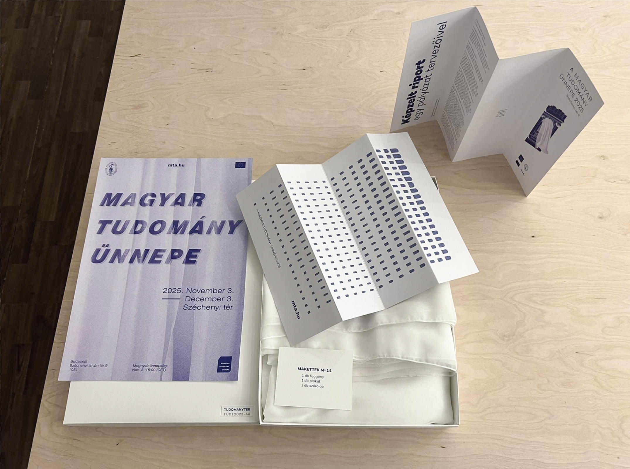 A függönyök lekerülnek a házról, az Akadémia munkatársai előkészítik a következő évi pályázat kiírását. A függönyök anyagát újra felhasználjuk, értéküket visszaforgatjuk a költségek csökkentésére. Gyönyörű grafikát tervezünk a limitált kiadású MTA-s bevásárlótáskákhoz, melyeket a függönyök anyagából varrunk, pontosan 1000 darabot, melyek megvásárolhatók lesznek a székházban, az Akadémia külső helyszínein és eseményein.