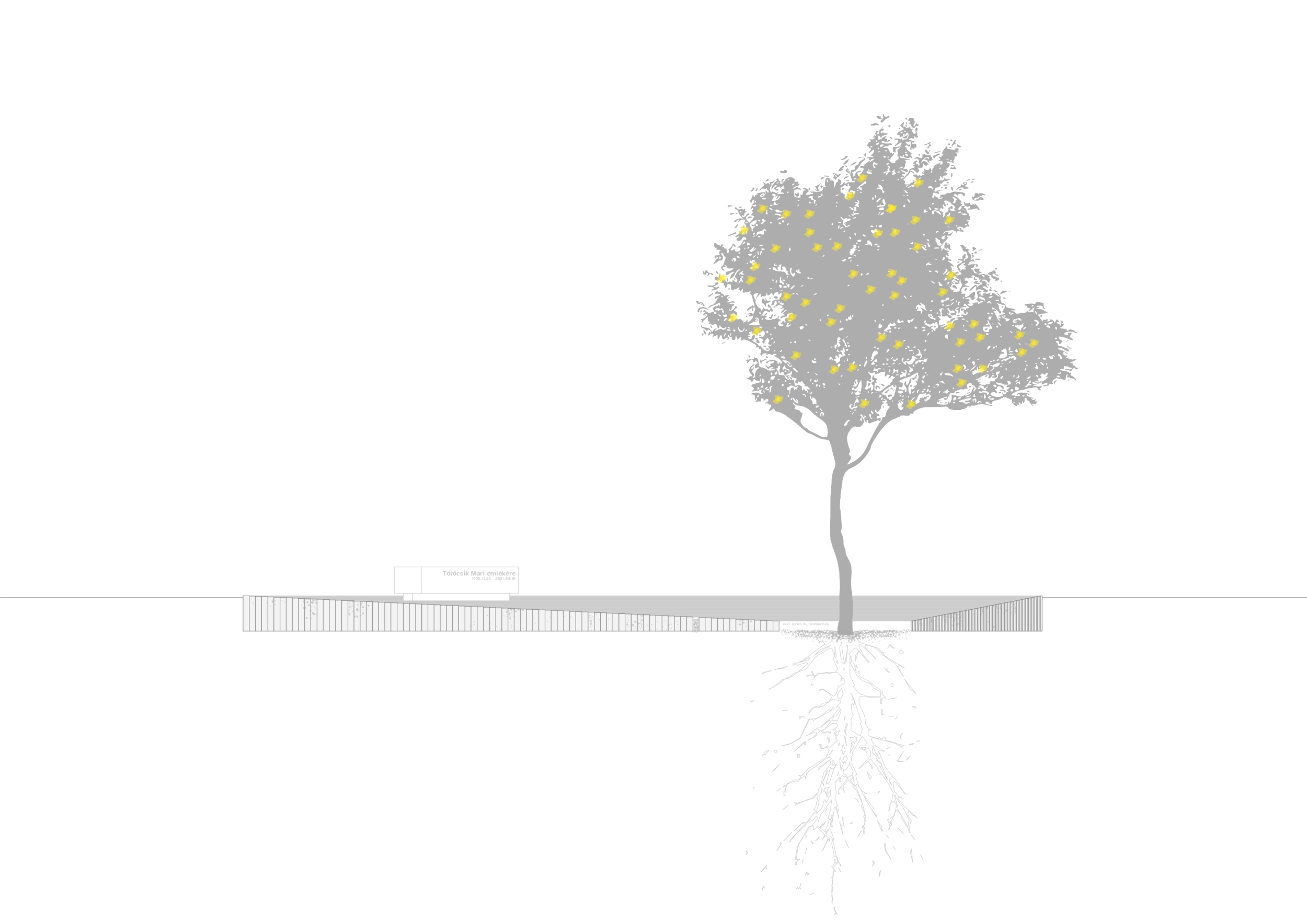 A pályamű legnagyobb erénye annak arányossága és természetessége. Arányos és természetes egyfelől a helyszínnel, amiként a tavaly ültetett tulipánfával már megjelölt emlékhelyet építi tovább, mindenféle túlzó építészeti vagy tájépítészeti gesztus nélkül. De arányos és természetes a kapcsolódása Törőcsik Mari emlékéhez is, mert beavatkozás a park életébe egyszerre erős jelenlétet, ugyanakkor finom belesimulást is ígér.