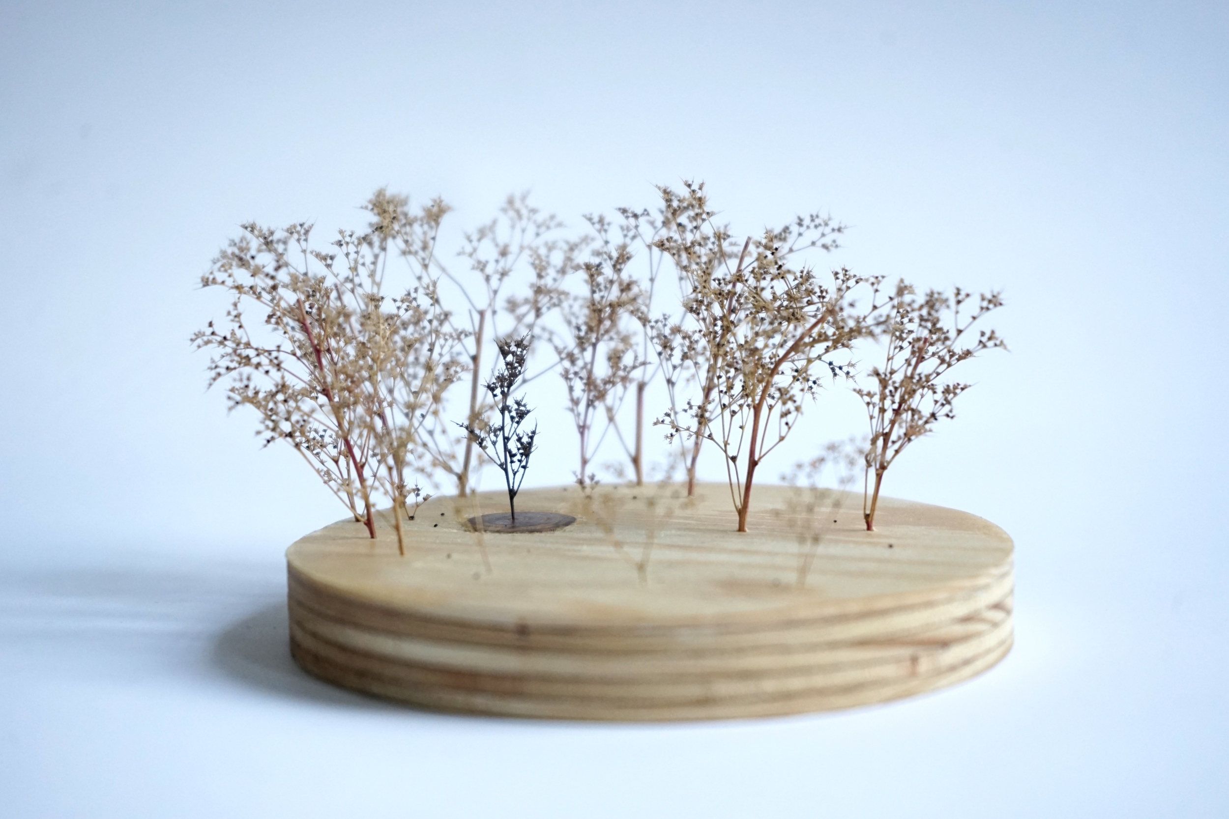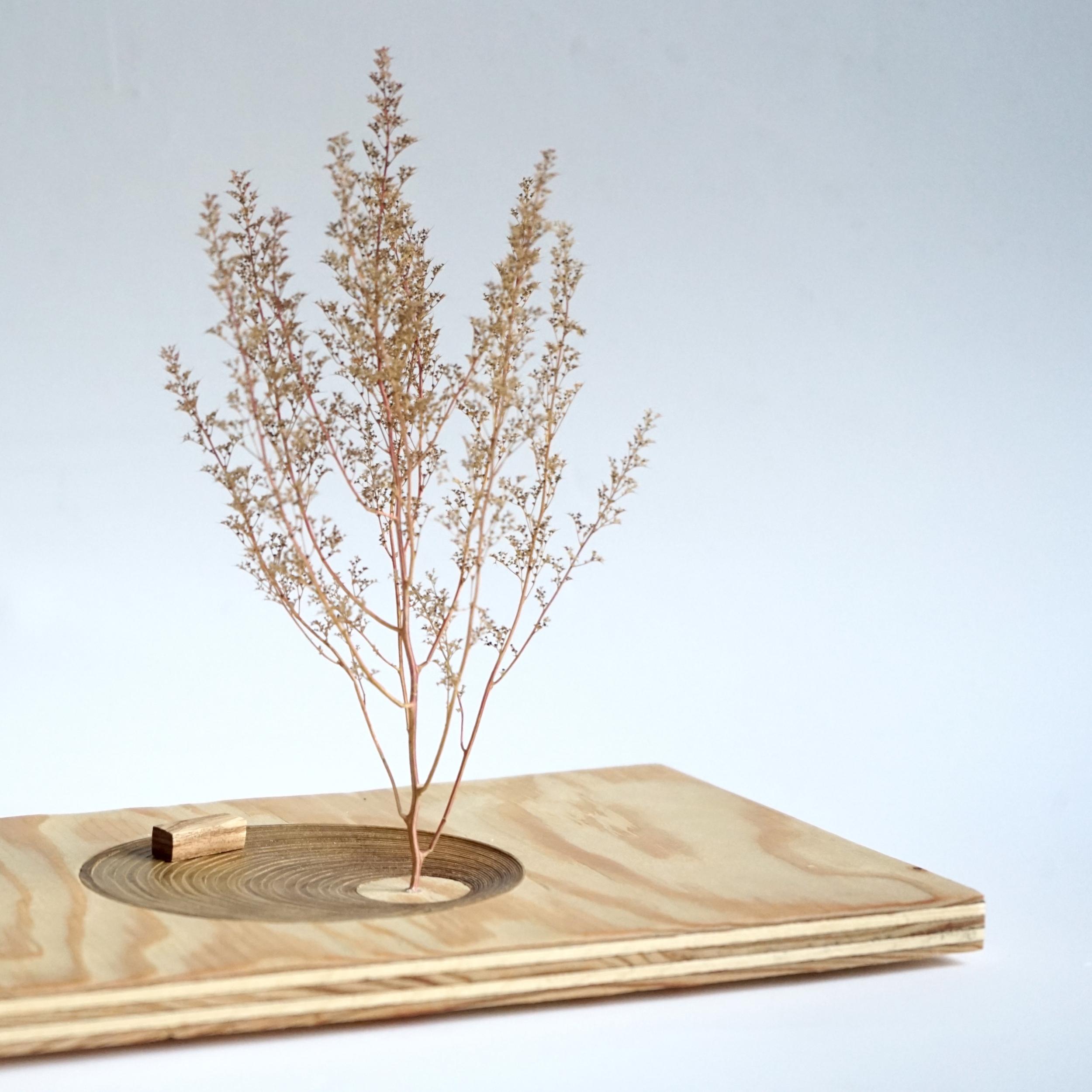 Az emlékfa körül színházi helyzetet hozunk létre, kiemeljük a többi közül. Árnyéka, lehulló levelei, azok színváltozása játékká válik. Viszonya a környezettel átalakul: figyelmet kap közönségétől. A kiemelés 87 gyűrűvel történik. Törőcsik Mari életének évei. A külső perem a kezdet, az idő befelé halad, gyorsul, egy pontba gravitál. Halálával az anyag megszűnik, a folyamat megfordul. A fa évgyűrűi hordozzák tovább az időt. Létrejön az emlékezés folytonossága múlt, jelen és jövő között.